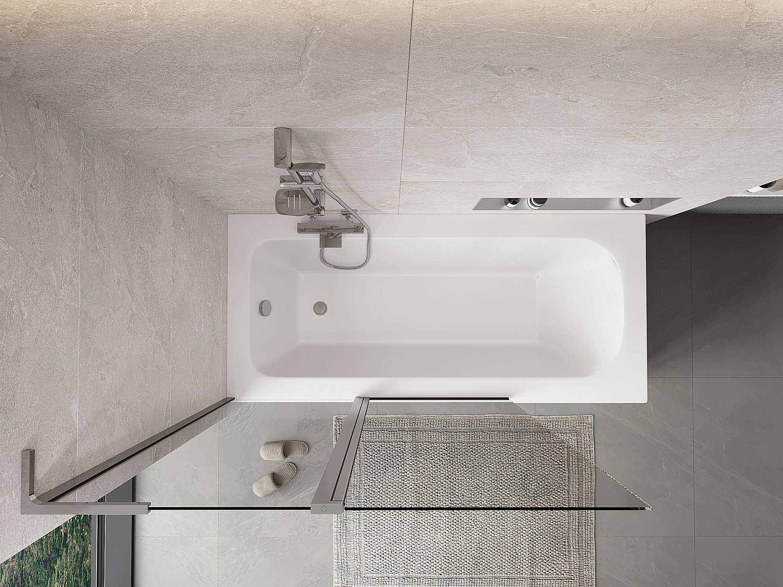 Scherm gemaakt van twee vleugels met de mogelijkheid om het op te vouwen. Deze oplossing bespaart meer ruimte in de badkamer en maakt het gemakkelijk om de overgebleven ruimte te gebruiken wanneer we de badzone niet gebruiken.
