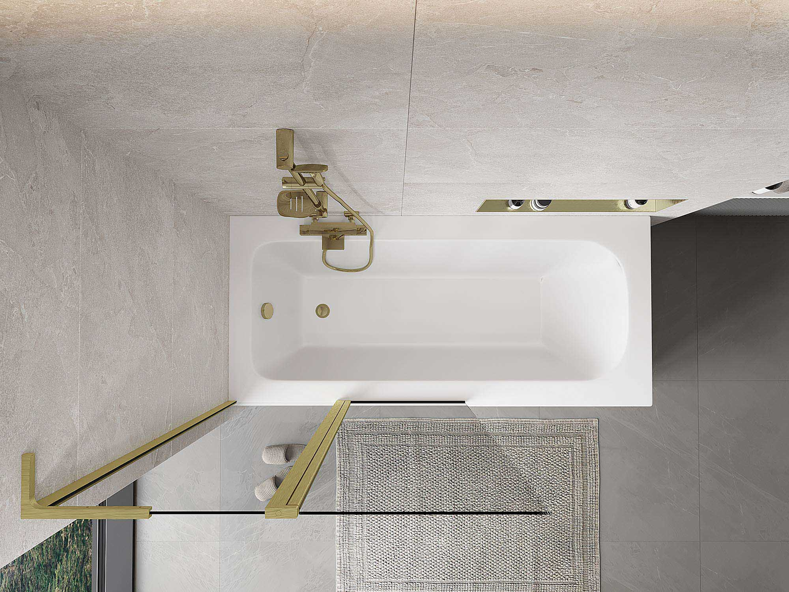 Scherm gemaakt van twee vleugels met de mogelijkheid om het op te vouwen. Deze oplossing bespaart meer ruimte in de badkamer en maakt het gemakkelijk om de overgebleven ruimte te gebruiken wanneer we de badzone niet gebruiken.