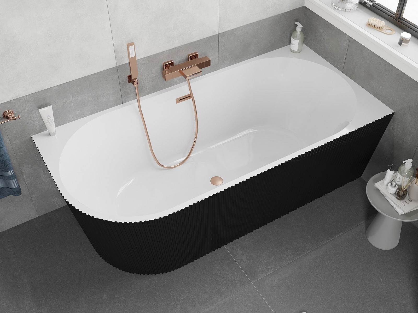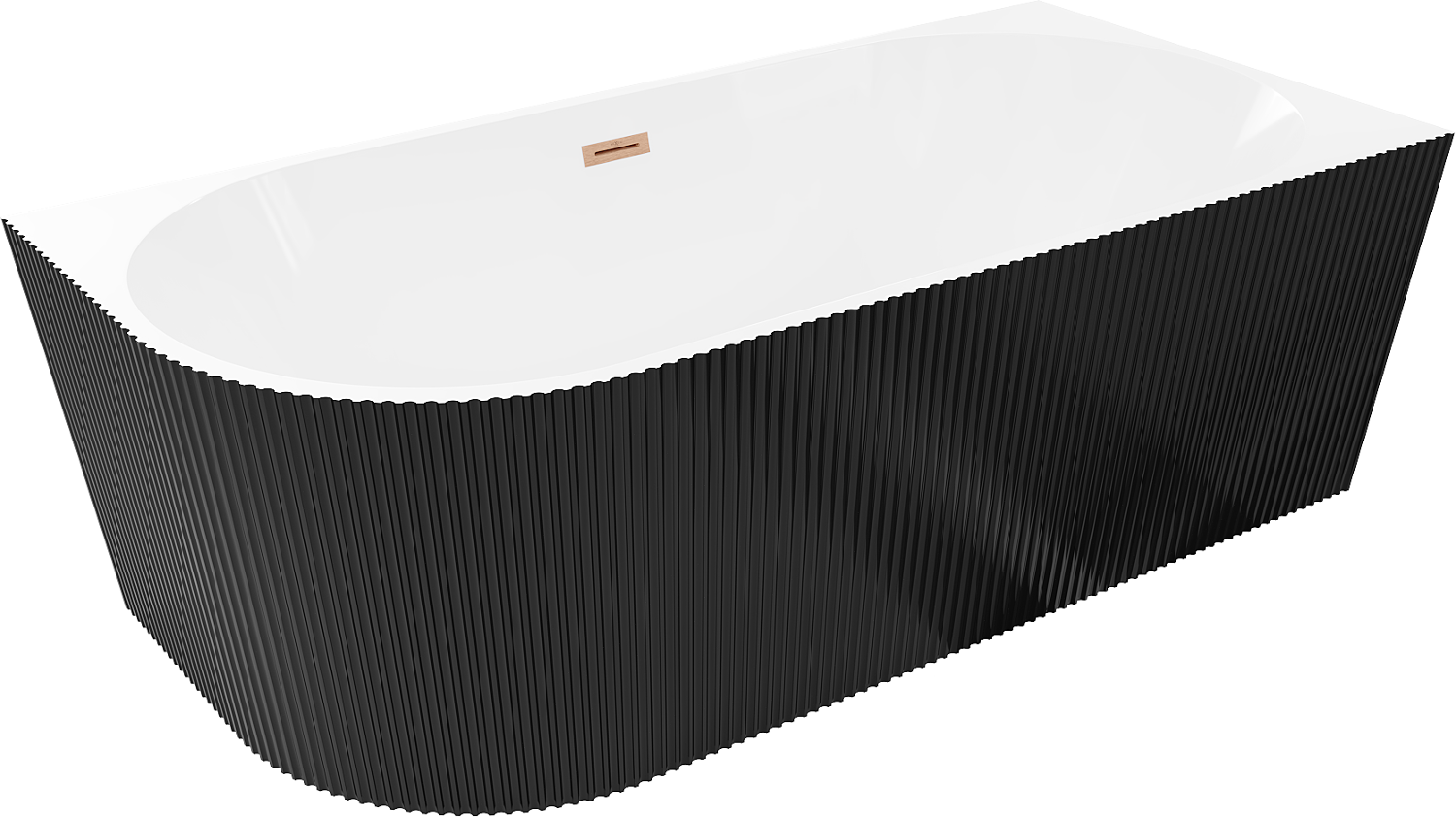 Mexen Silo vrijstaande hoekbadkuip rechts geribbeld 170 x 80 cm, wit/zwart, overloop geborsteld koper - 52891708075P-65