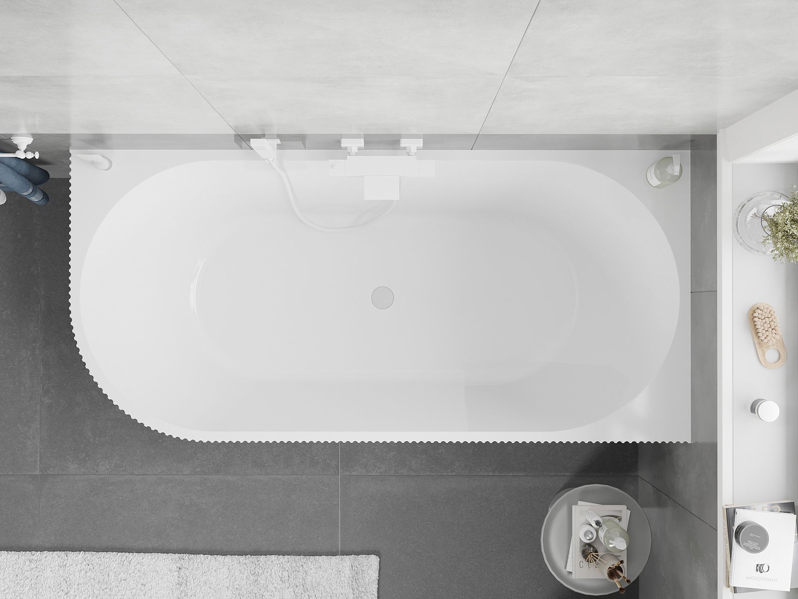 Het is een modern materiaal dat een elegante uitstraling combineert met hoge duurzaamheid. Het is bestand tegen mechanische beschadigingen, gemakkelijk schoon te maken en aangenaam om aan te raken. De transparante vorm en de dunne rand van het bad geven het een gevoel van lichtheid en een uniek karakter, waardoor het een opvallend accent vormt in de badkamerinrichting.