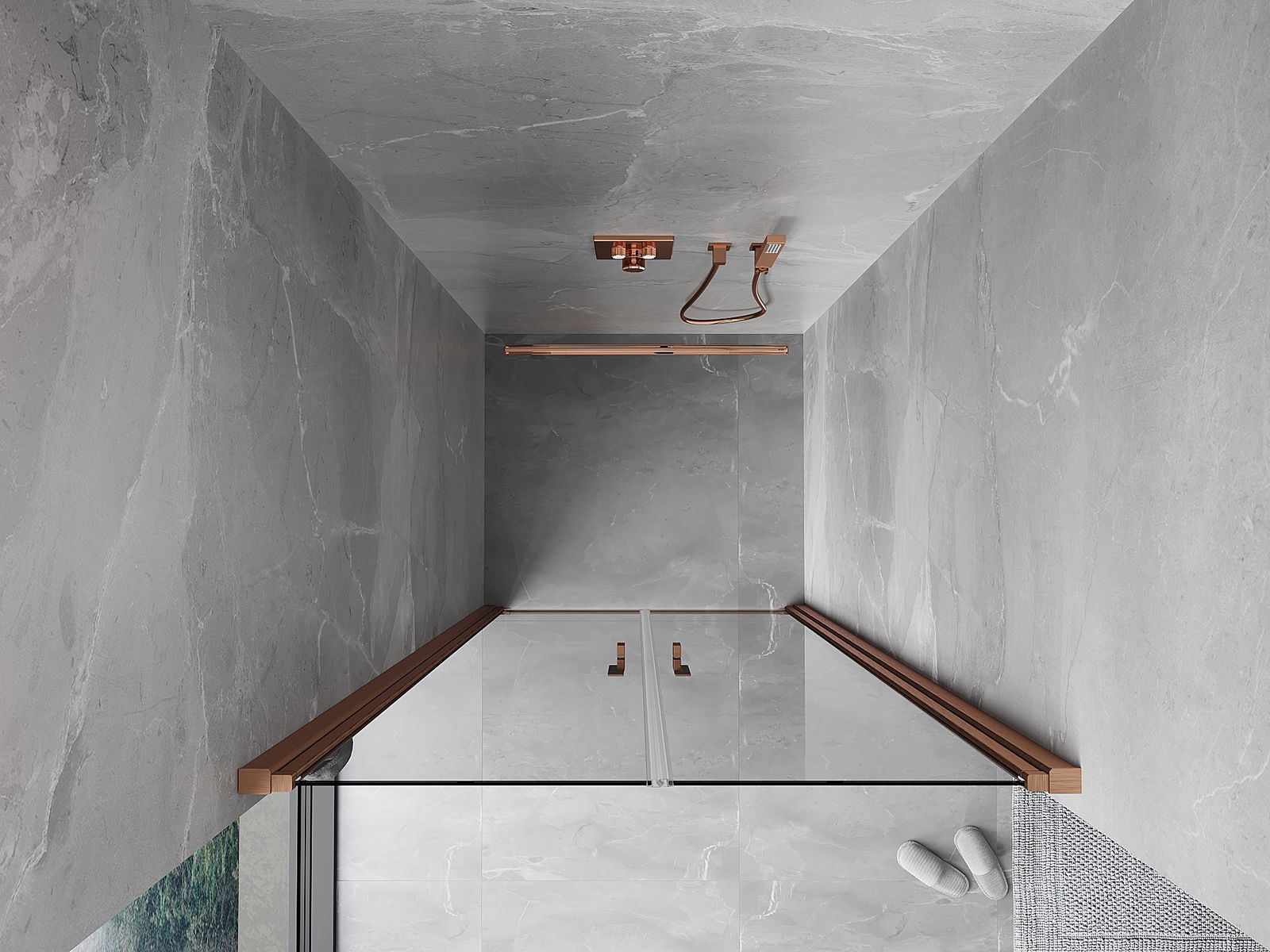 Handige en comfortabele greep is gemaakt van duurzaam en weerbestendig metaal. De modieuze vorm in combinatie met een afwerking die past bij de kleur van de profielen geeft het geheel een moderne en stijlvolle uitstraling, wat de esthetiek van elke badkamer benadrukt.