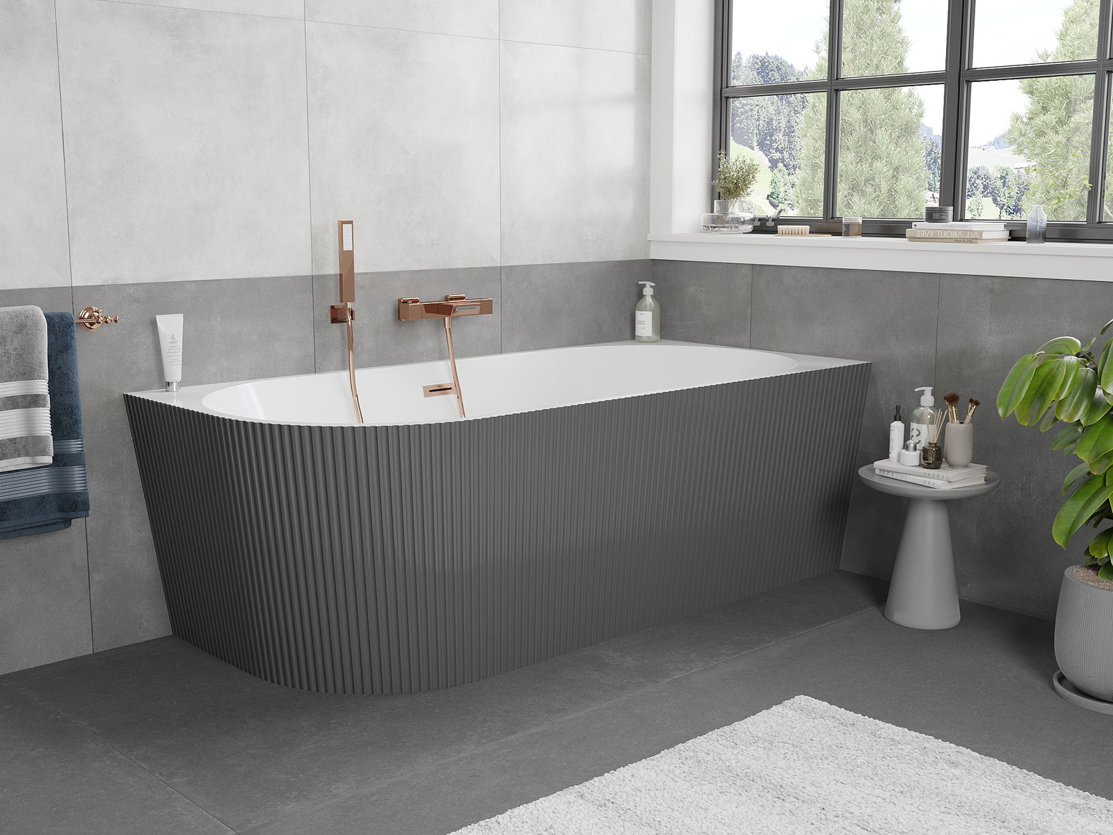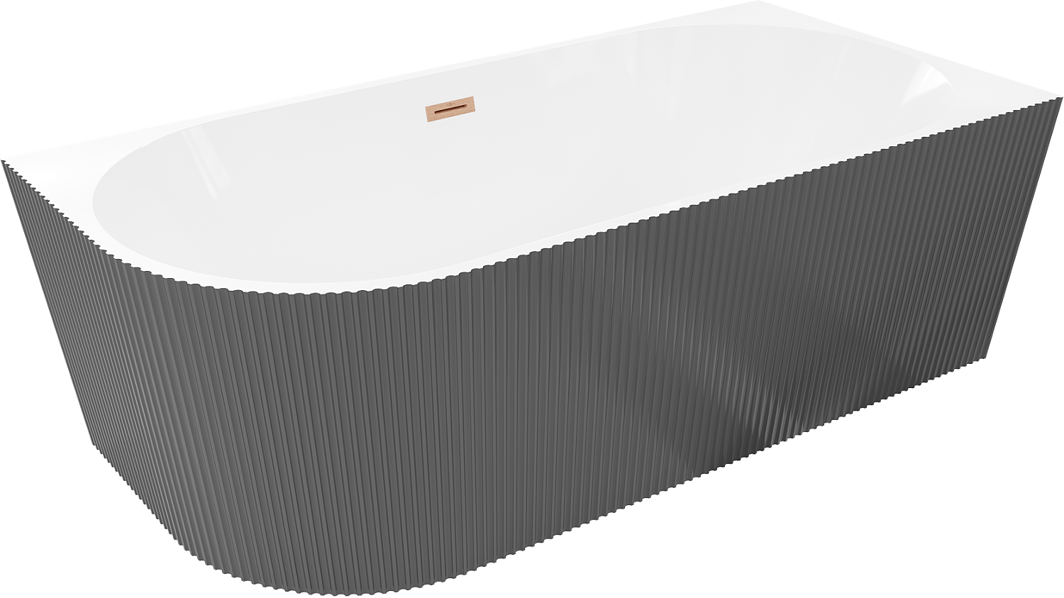 Mexen Silo vrijstaande hoekbadkuip rechts geribbeld 170 x 80 cm, wit/grijs, geborsteld koper overloop - 52891708062P-65