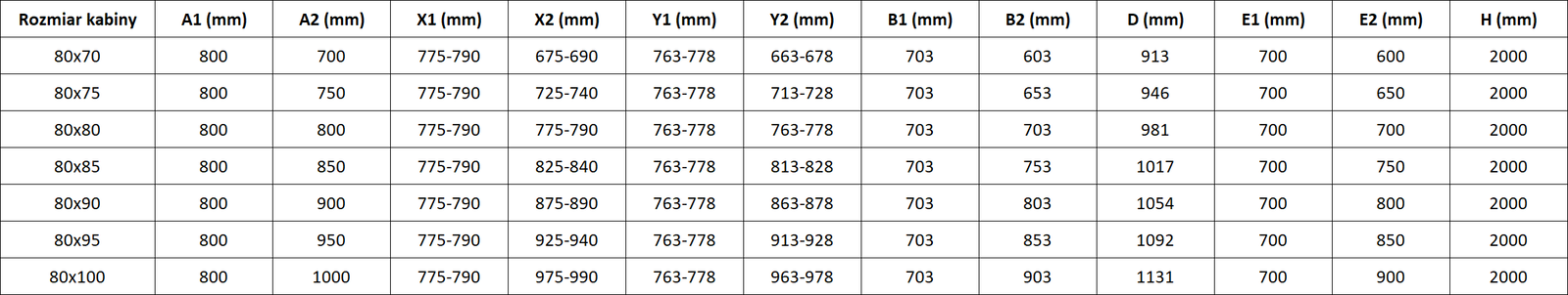 Draaideuren bieden maximale vrijheid tijdens het gebruik. Ze hebben stevige scharnieren gemaakt van duurzaam materiaal, die gemakkelijk schoon te houden zijn en gemakkelijke toegang tot het interieur van de cabine bieden.