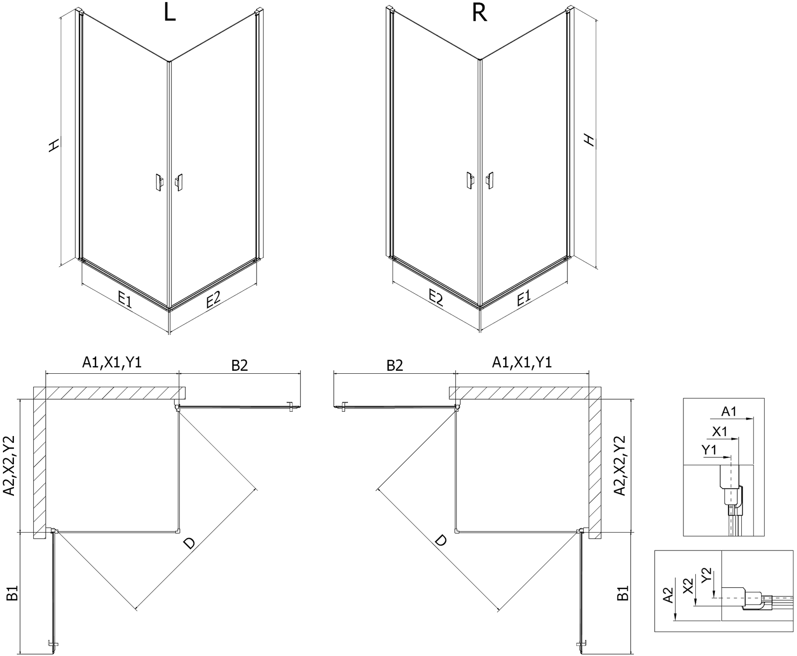 Draaideuren bieden maximale vrijheid tijdens het gebruik. Ze hebben stevige scharnieren gemaakt van duurzaam materiaal, die gemakkelijk schoon te houden zijn en gemakkelijke toegang tot het interieur van de cabine bieden.