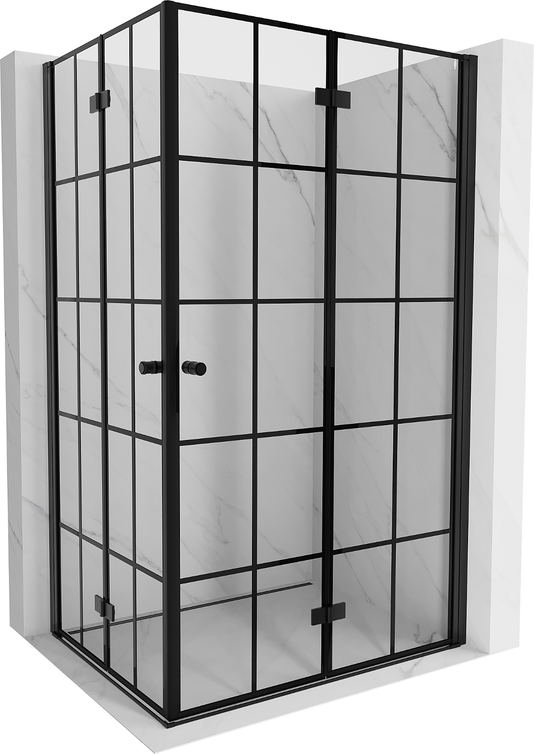 Mexen Mist-F Duo inklapbare douchecabine rechts 85 x 120 cm, zwarte raster, zwart - 8A6-085L-120P-70-77