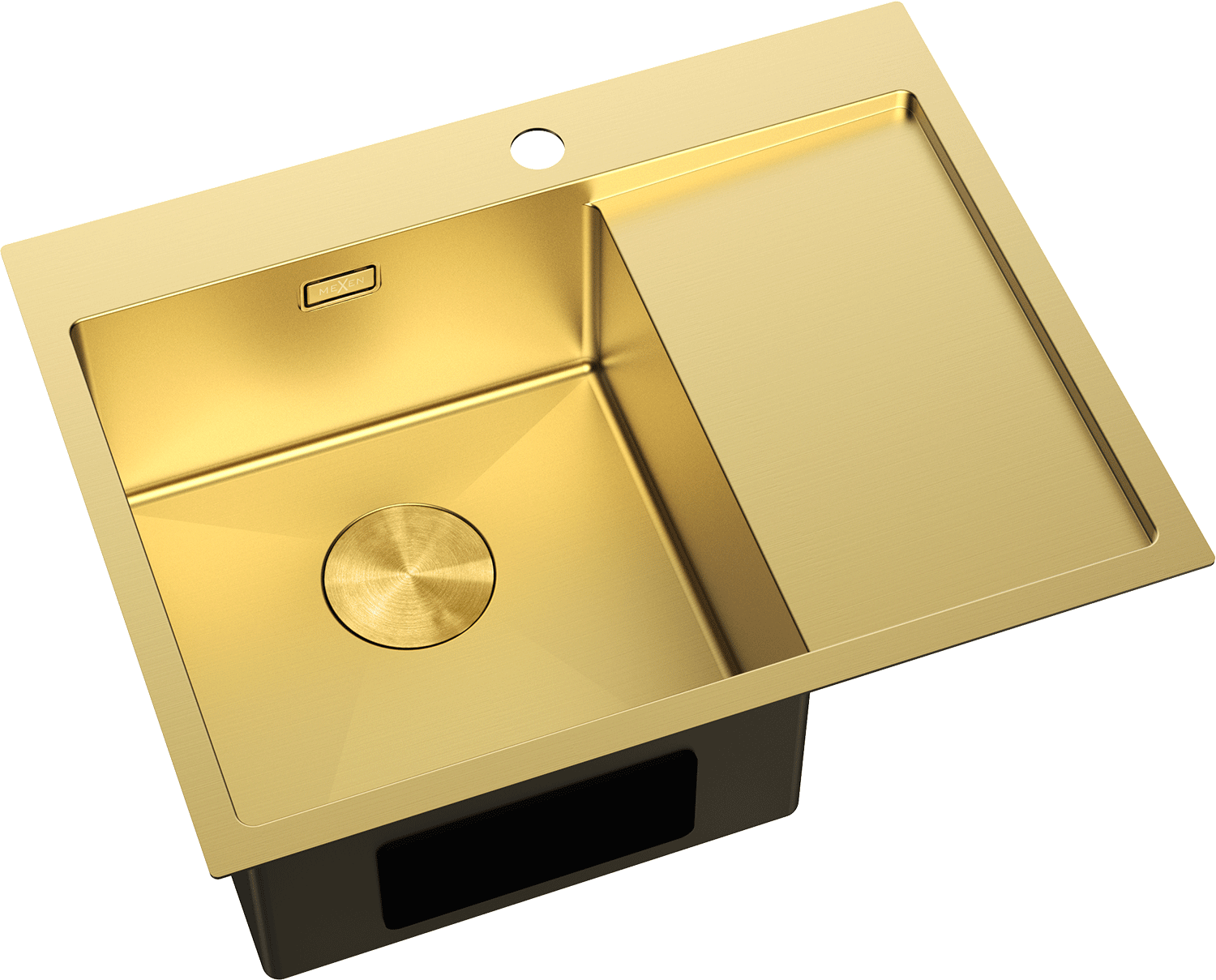 De gootsteen heeft een verborgen overloopgat dat beschermt tegen het overstromen van water, terwijl het tegelijkertijd een elegante uitstraling behoudt. Discreet geïntegreerd in de wand van de gootsteen, verstoort het de esthetiek niet. Het is een praktische en stijlvolle oplossing die veiligheid met modern design combineert.