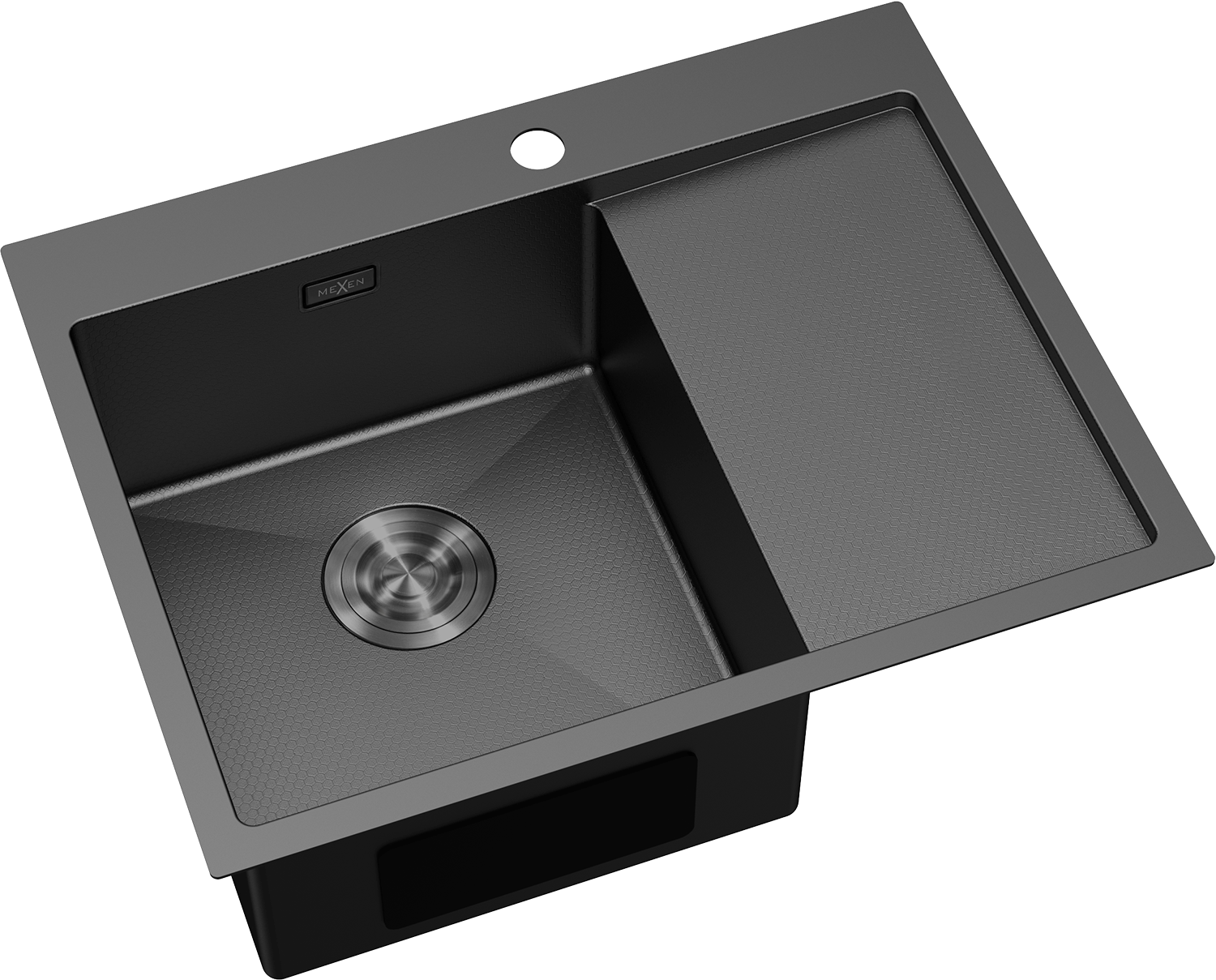 Mexen Exar roestvrijstalen spoelbak, 1-komorige met linker afdruiprek 620 x 480 mm, zwart HC - 6431621005L-70HC