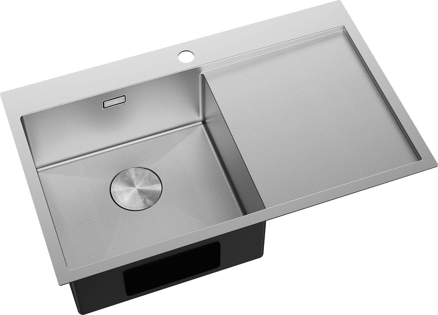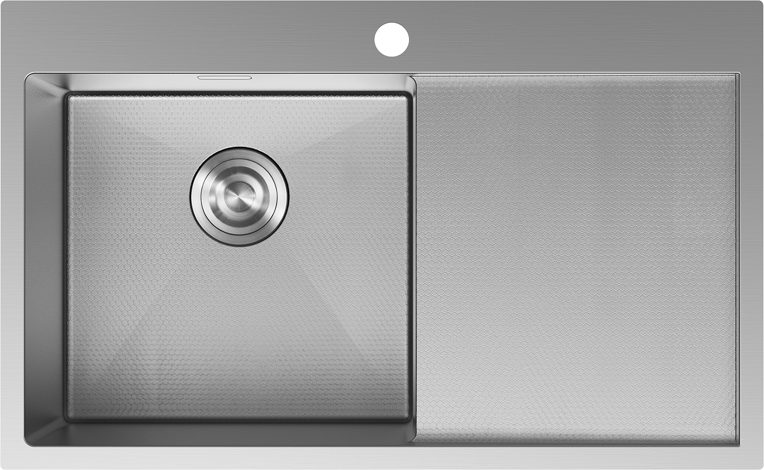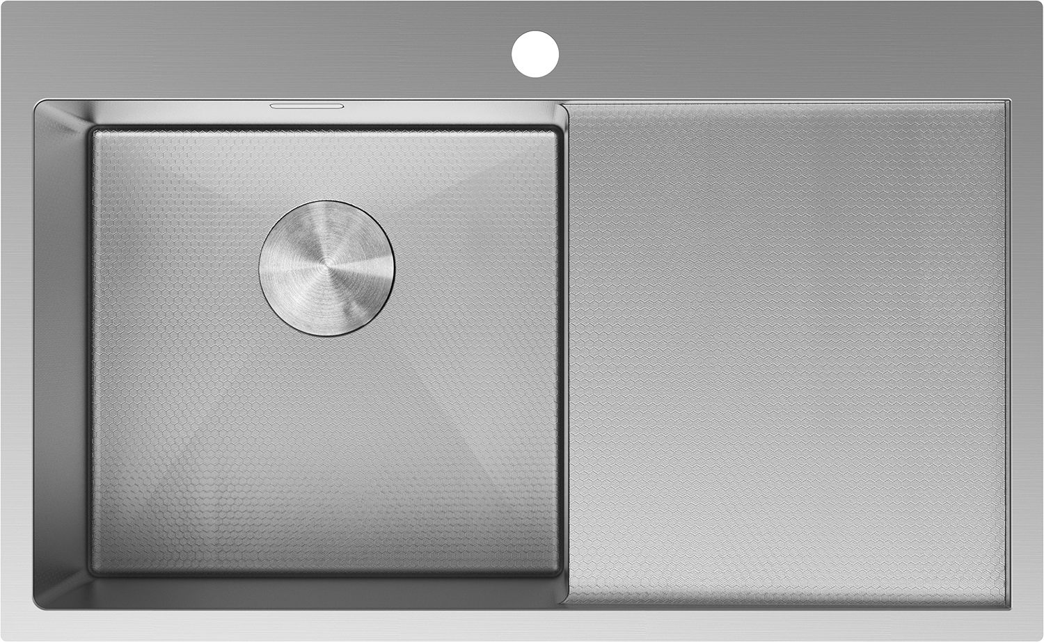 Het oppervlak van de gootsteen is zeer goed uitgehard en onderscheidt zich door uitzonderlijke weerstand tegen mechanische schade en krassen. Het duurzame materiaal zorgt ervoor dat de gootsteen er jarenlang goed uit blijft zien.