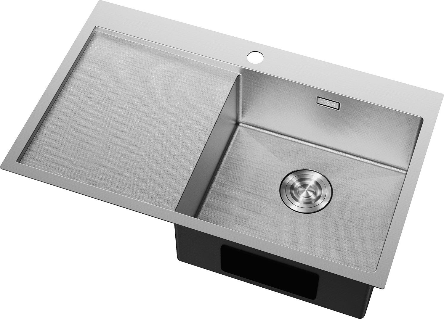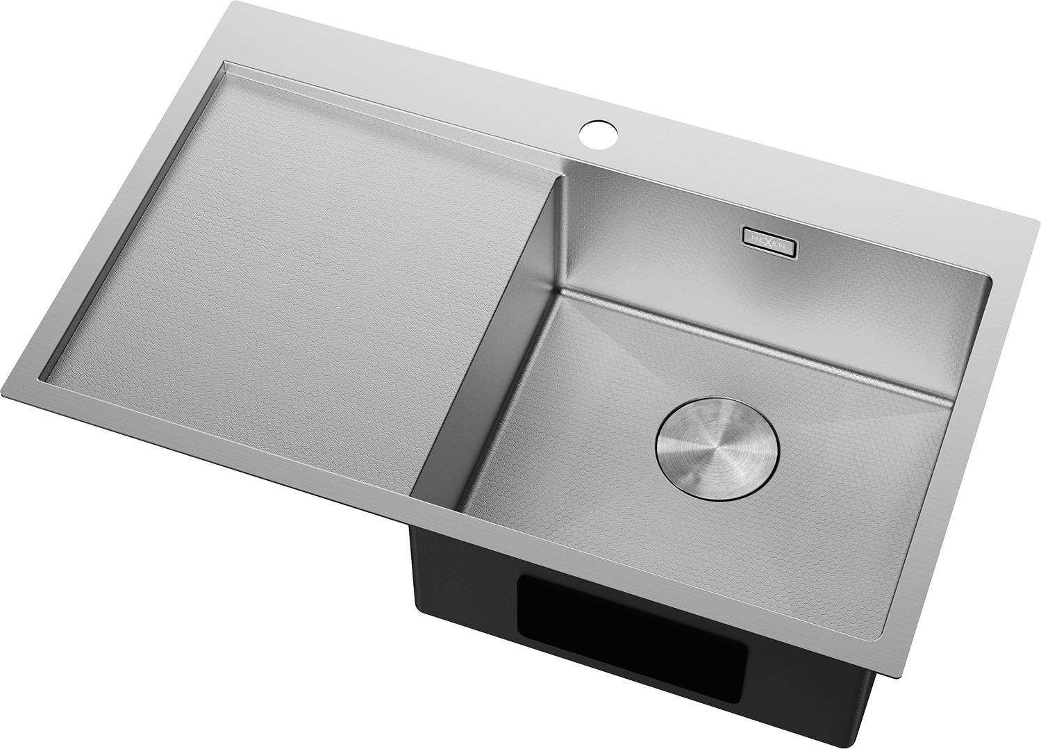 Mexen Exar stalen spoelbak 1-komerig met afdruipgedeelte, rechts 780 x 480 mm, inox HC - 6434781010P-01HC