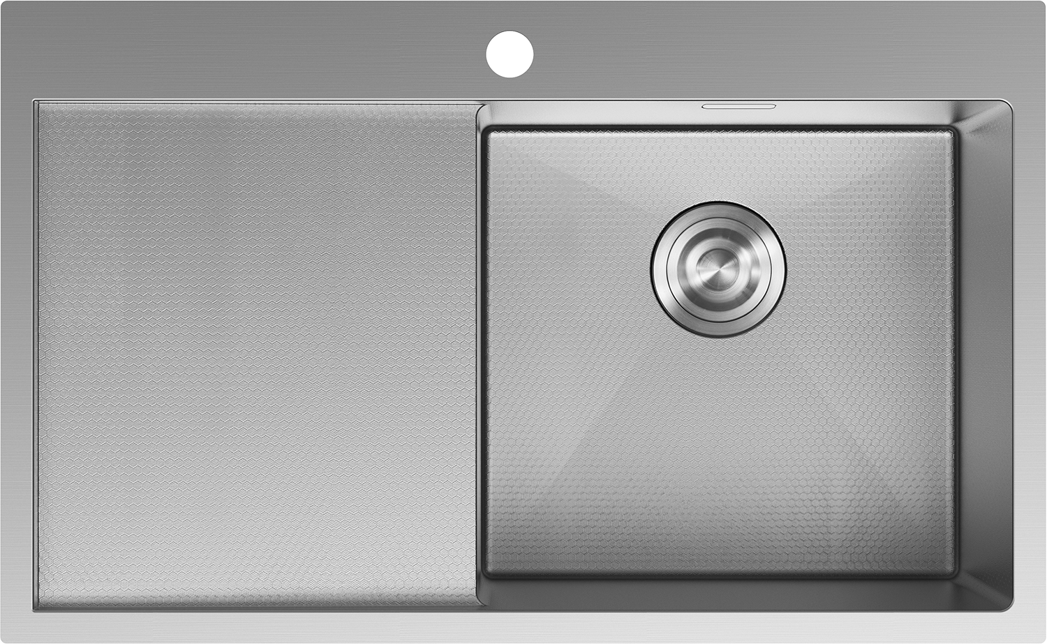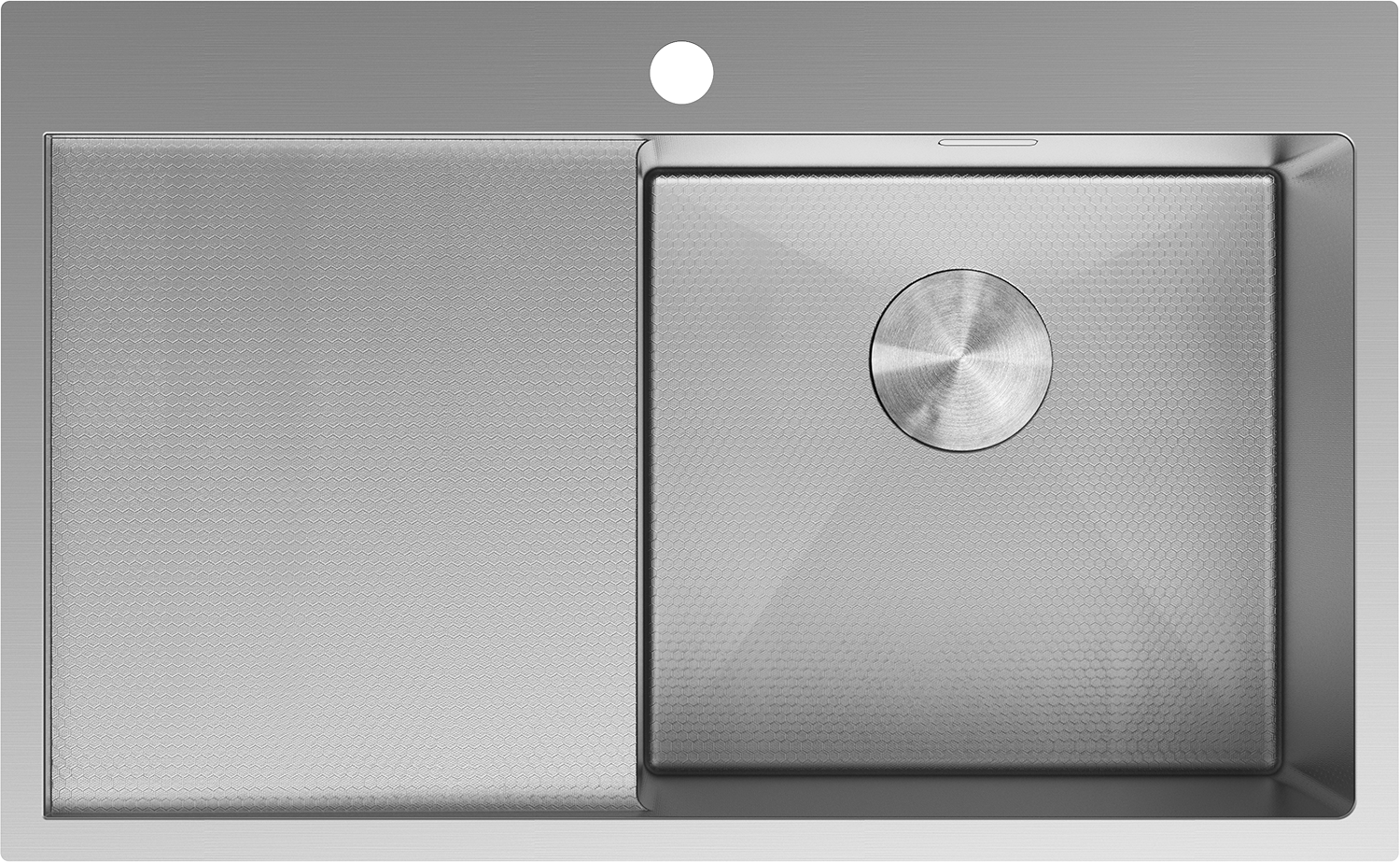 Het oppervlak van de gootsteen is zeer goed uitgehard en onderscheidt zich door uitzonderlijke weerstand tegen mechanische schade en krassen. Het duurzame materiaal zorgt ervoor dat de gootsteen er jarenlang goed uit blijft zien.