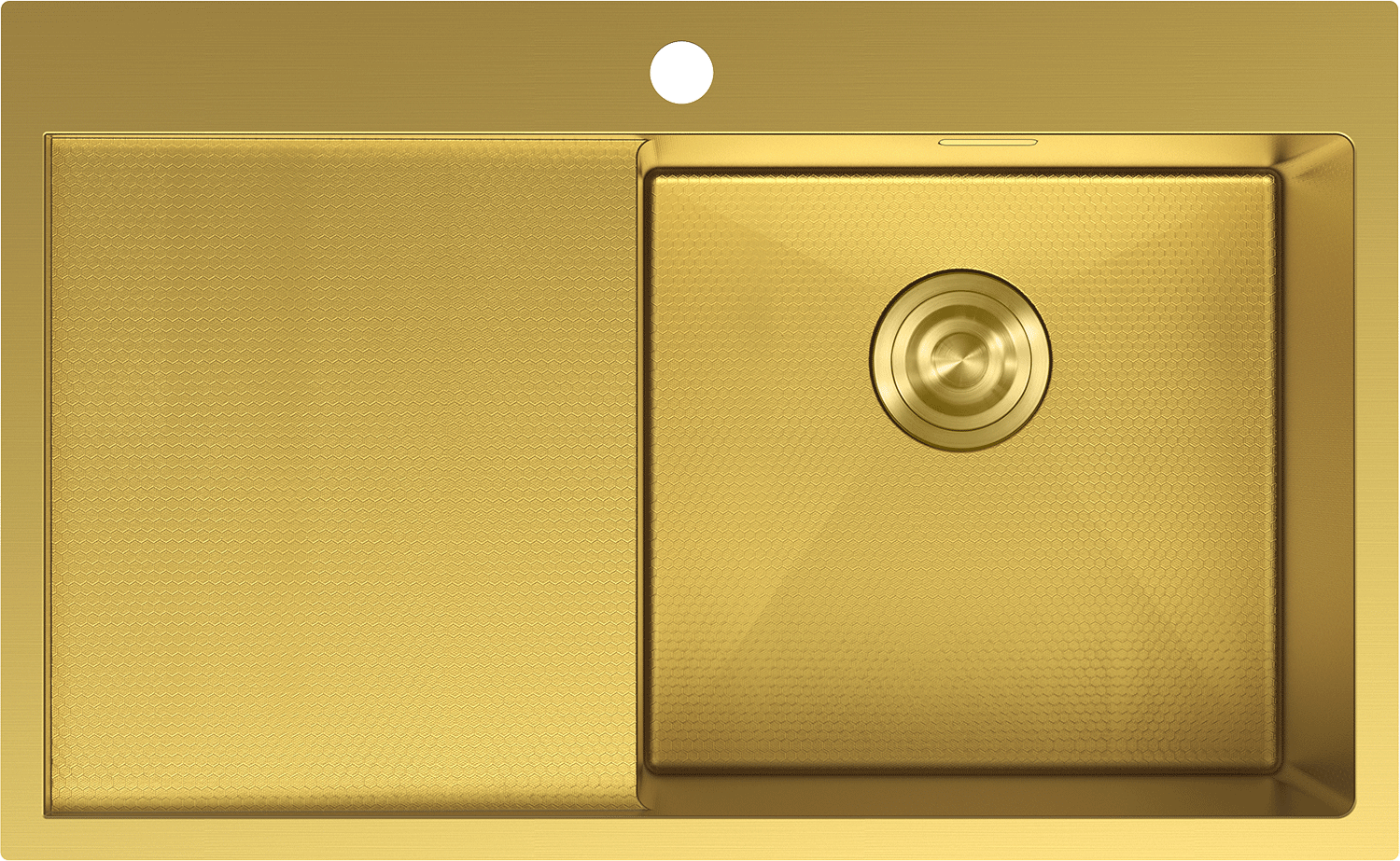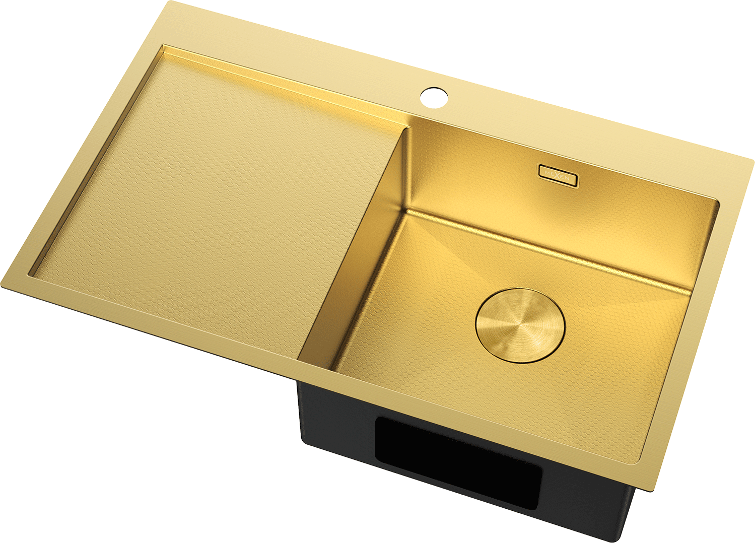 Mexen Exar stalen spoelbak 1-komoers met afdruipvlak, rechts 780 x 480 mm, gouden HC - 6434781010P-55HC