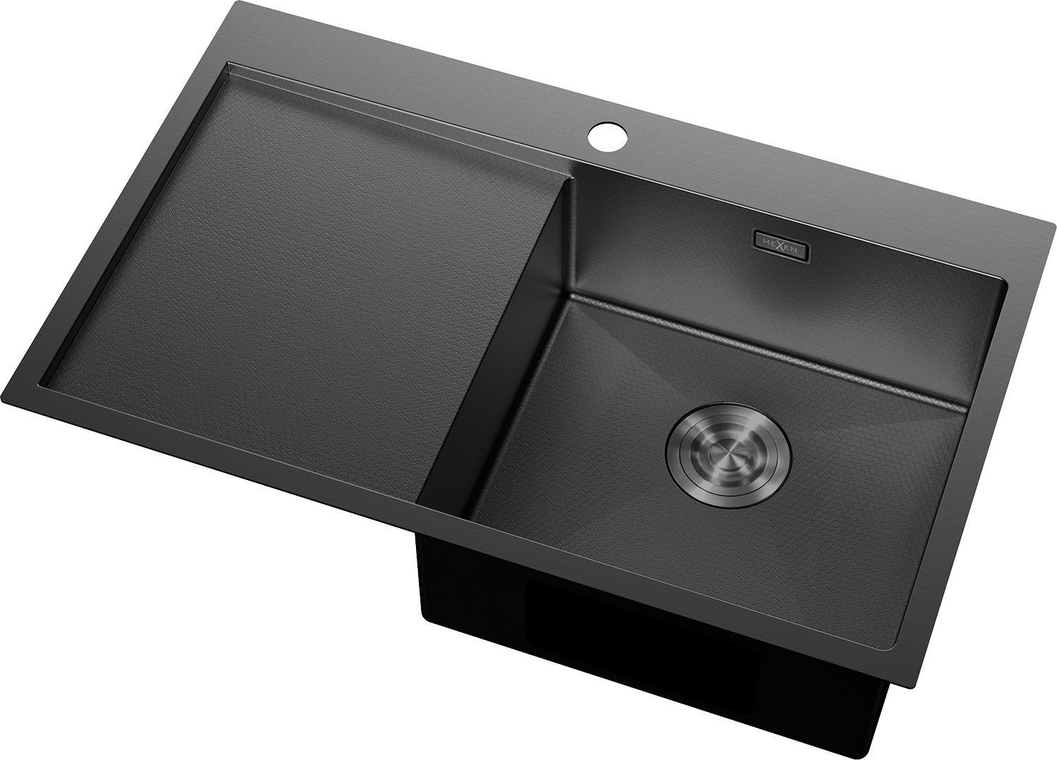 Mexen Exar stalen spoelbak 1-kompartiment met afdruiprek, rechts 780 x 480 mm, zwart HC - 6434781010P-70HC