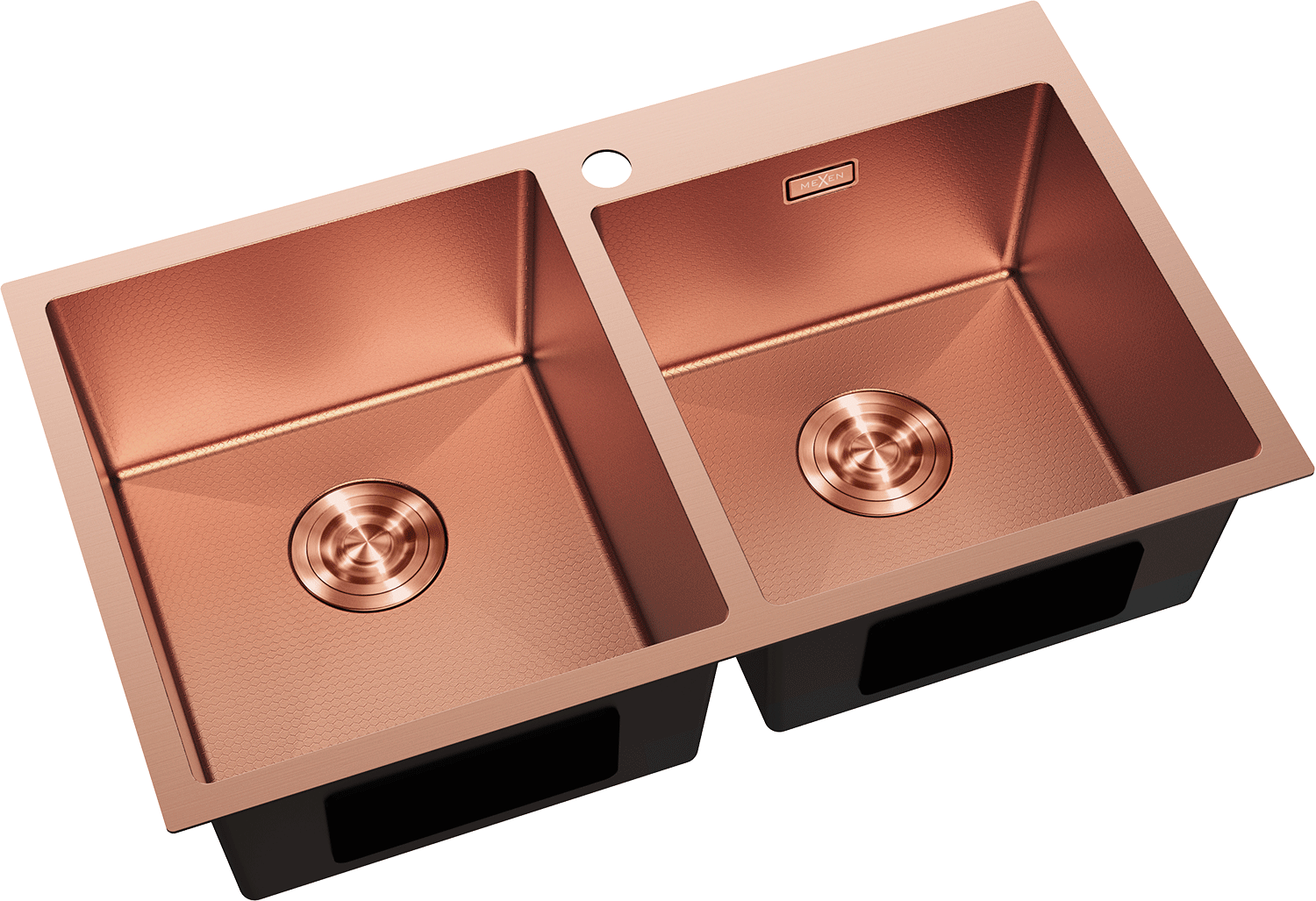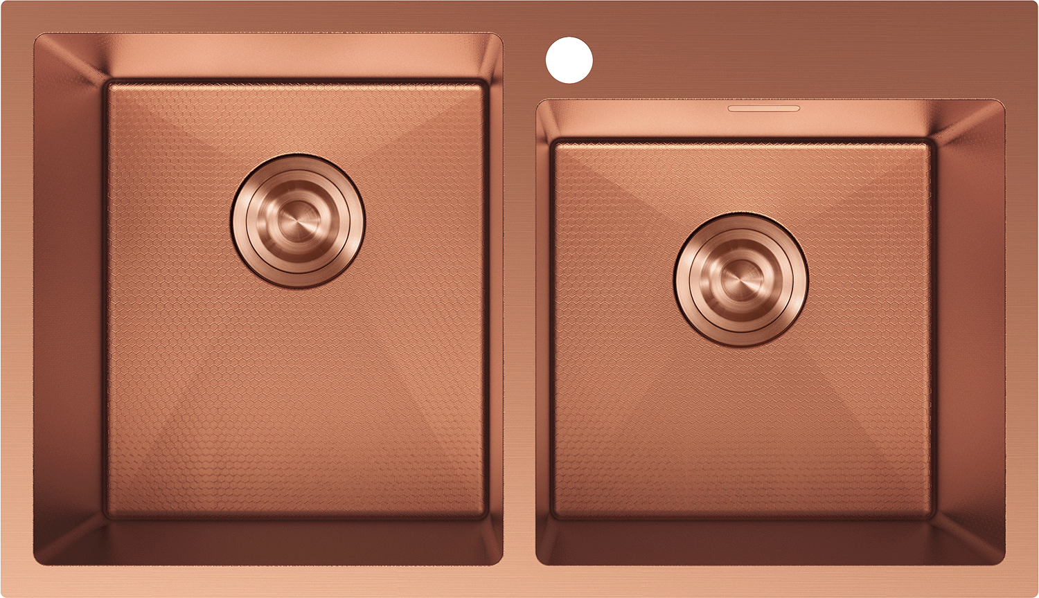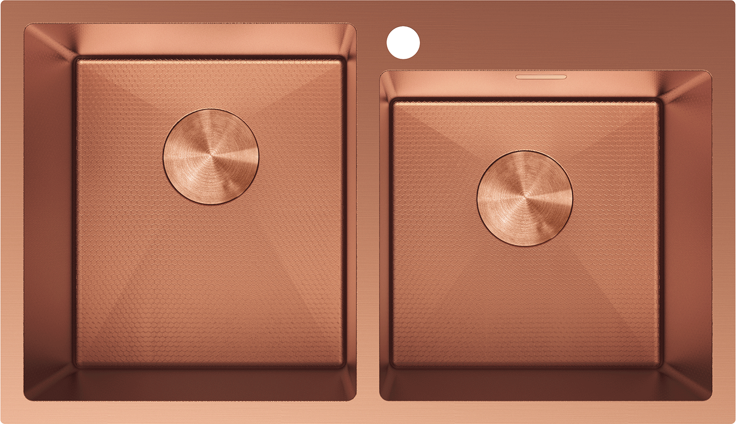 Mexen Xorin stalen spoelbak met 2 compartimenten 780 x 450 mm, koper HC - 6441782000-65HC