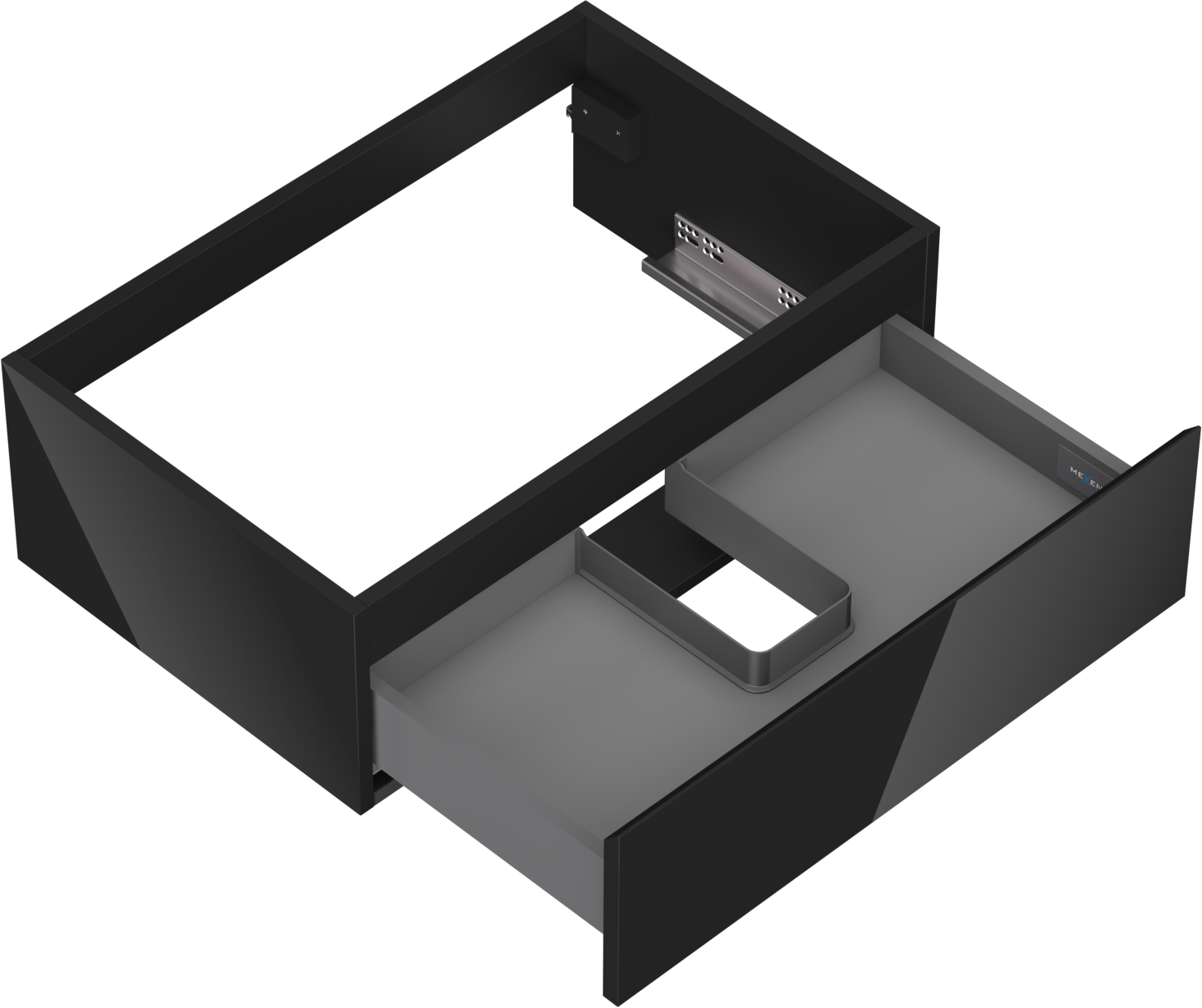 De uitsparing in de lade is ontworpen voor de sifon, die essentieel is bij het installeren van wastafels. Hierdoor kan de unit volledig functioneel worden geïnstalleerd zonder dat er laderuimte hoeft te worden opgeofferd.