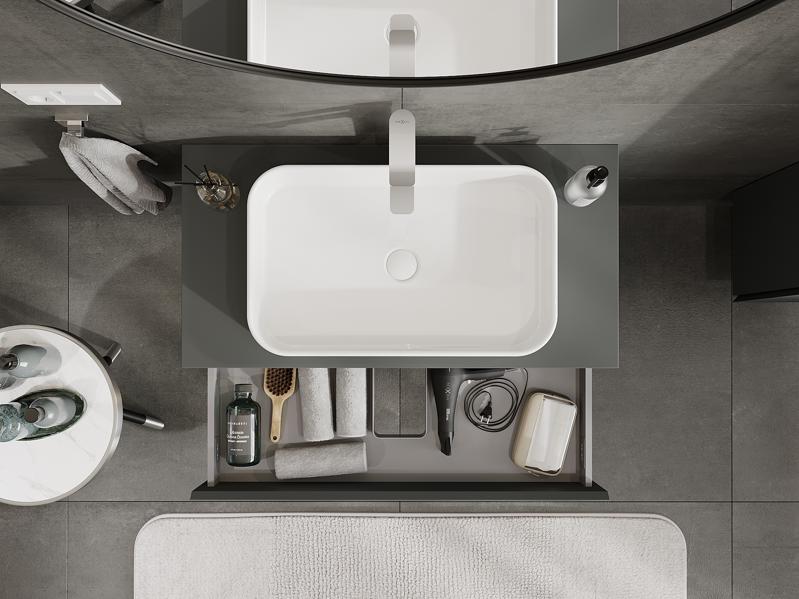 Mexen Orio badkamerkast voor wastafel 90 cm, 1 lade, mat grafiet - 91A10-09023-1-BF66
