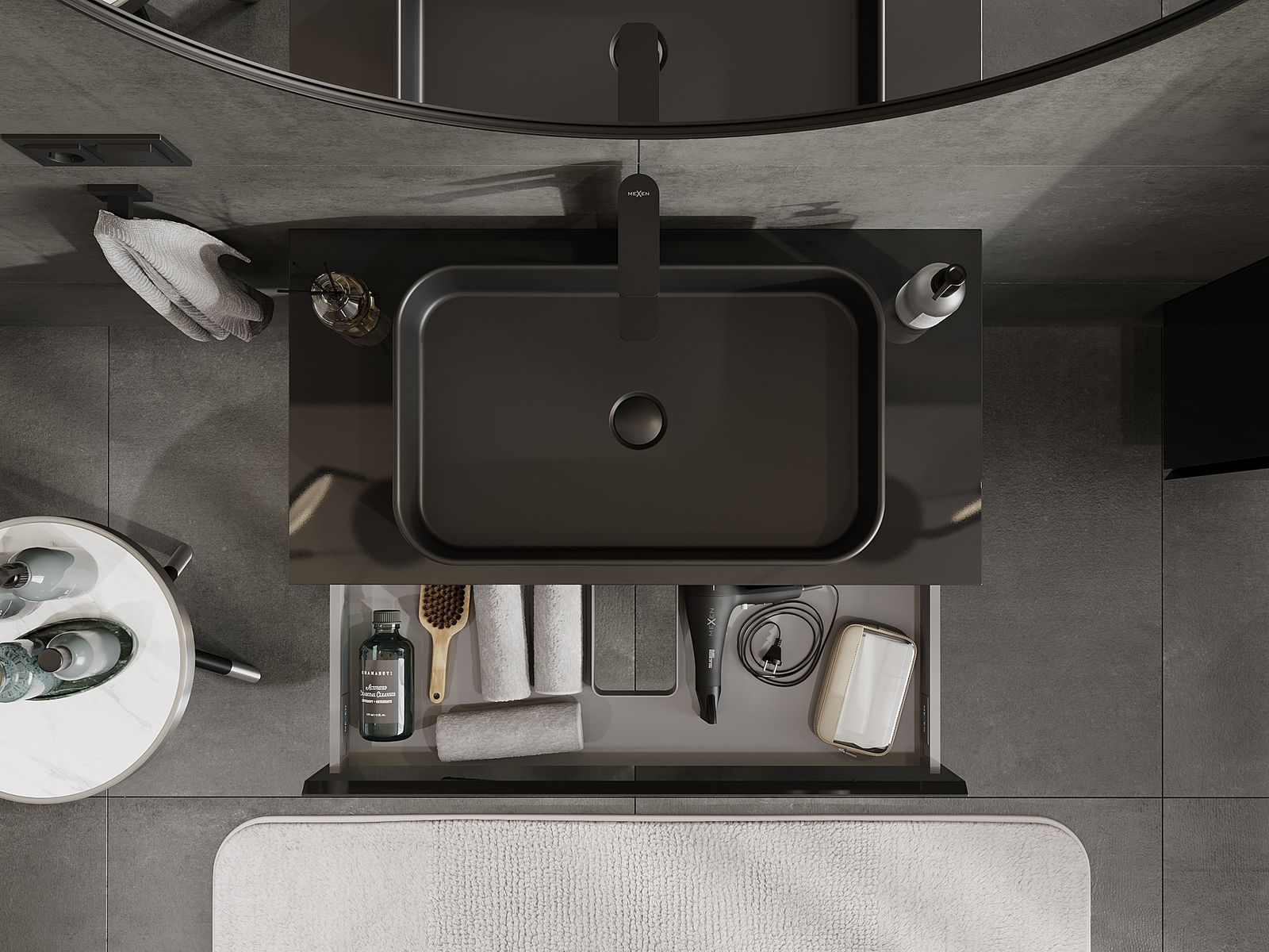 Mexen Orio badkamermeubel onderwastafel 90 cm, 1 lade, zwart glanzend - 91A10-09023-1-BF70