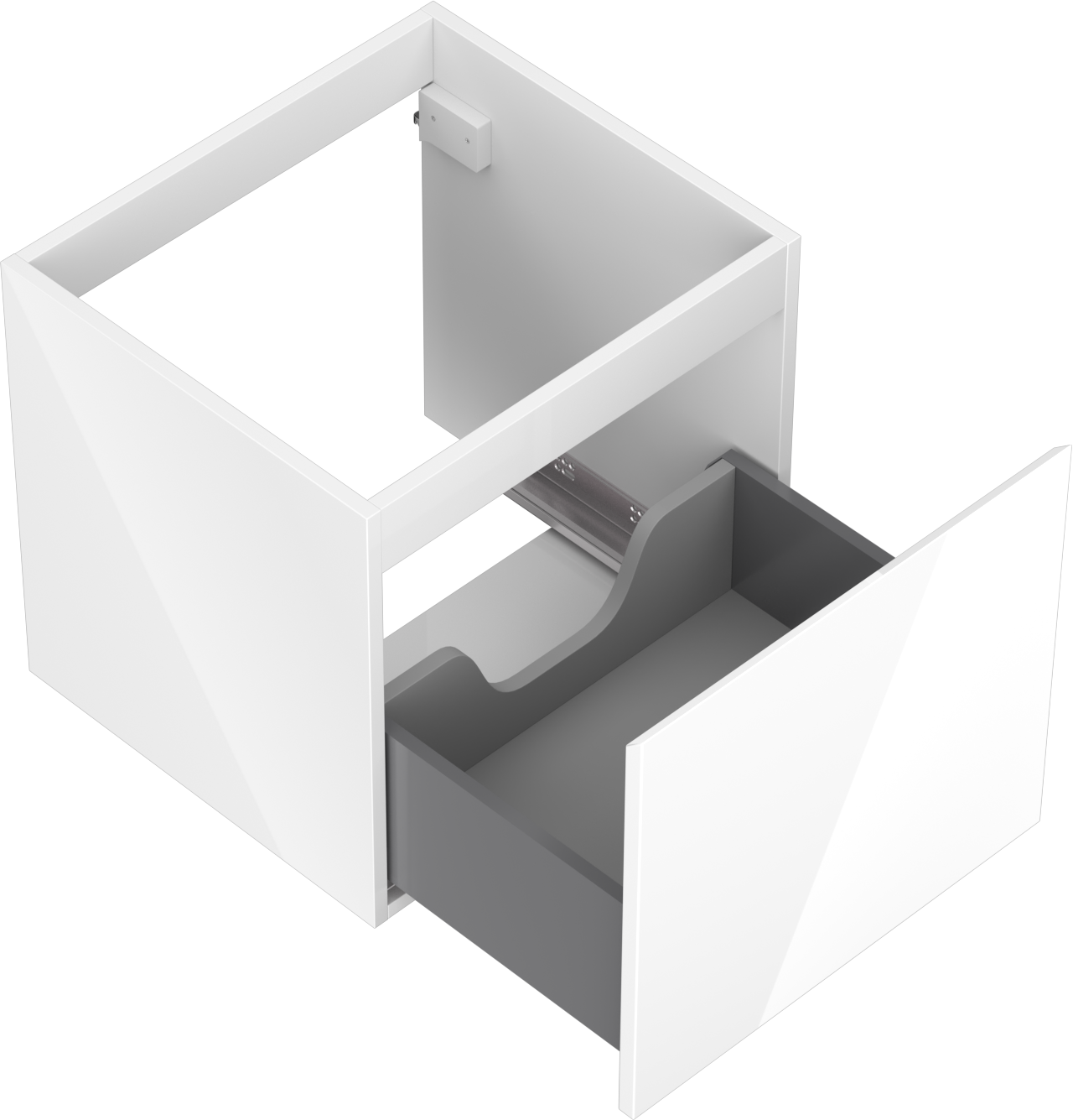 De uitsparing in de lade is zo ontworpen dat het de sifon kan bevatten, die noodzakelijk is in wastafelinstallaties. Hierdoor kan het meubel volledig functioneel worden gemonteerd, zonder dat er ruimte in de lade opgeofferd hoeft te worden voor installatiedoeleinden.