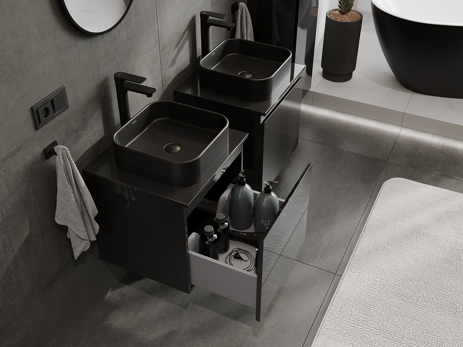 Onze modulaire badkamermeubels kunnen in verschillende kleurconfiguraties met elkaar worden gecombineerd, wat volledige personalisatie mogelijk maakt. Zowel het uiterlijk als de functies van de afzonderlijke elementen kunnen worden gekozen, waardoor de meubels kunnen worden aangepast aan persoonlijke stijlvoorkeuren en gebruikswensen.