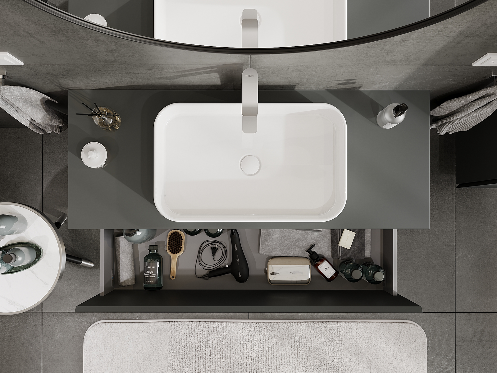 Onze modulaire badkamermeubels kunnen in verschillende kleurconfiguraties met elkaar worden gecombineerd, wat volledige personalisatie mogelijk maakt. Zowel het uiterlijk als de functies van de afzonderlijke elementen kunnen worden gekozen, waardoor de meubels kunnen worden aangepast aan persoonlijke stijlvoorkeuren en gebruikswensen.