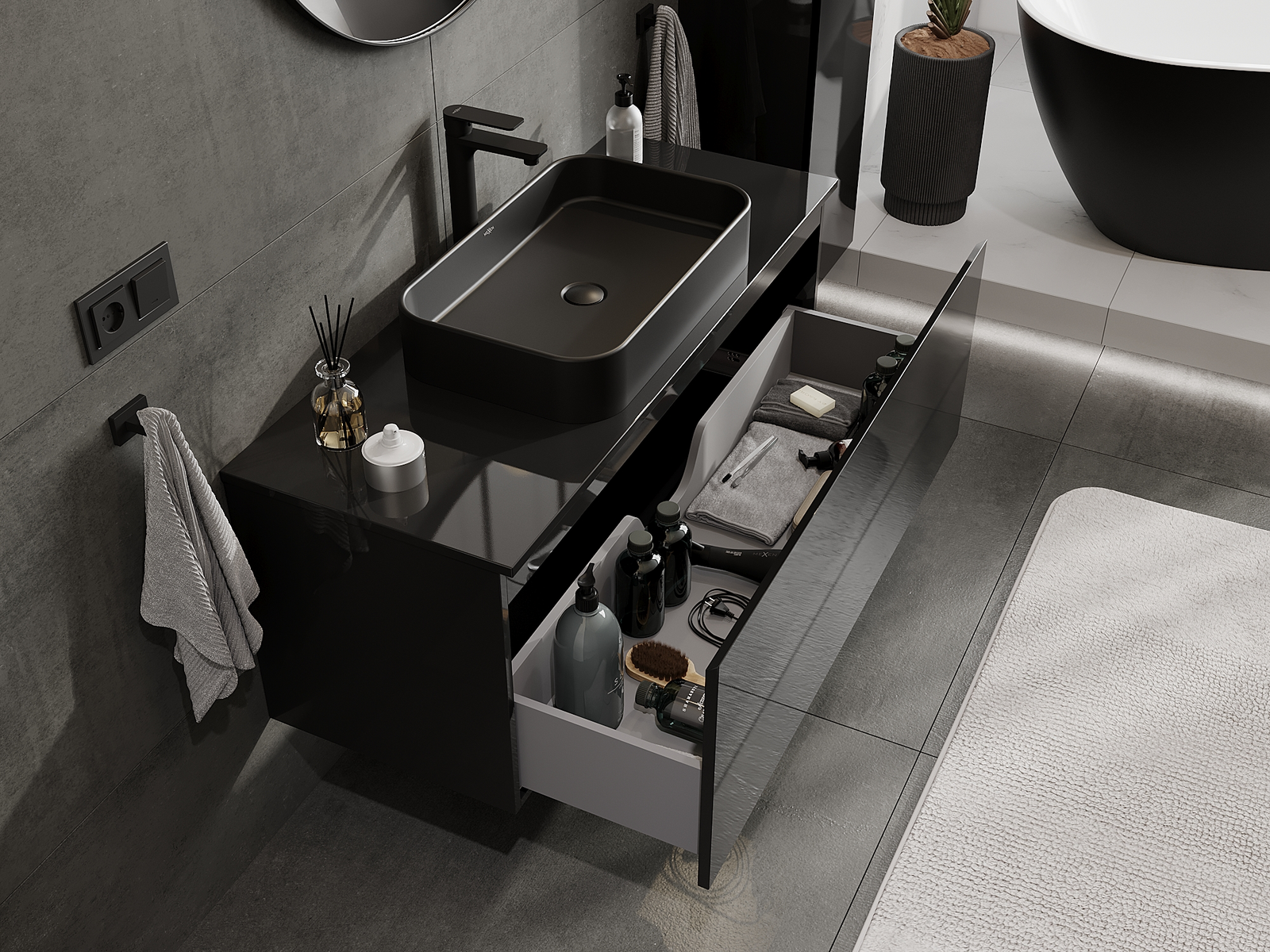Onze modulaire badkamermeubels kunnen in verschillende kleurconfiguraties met elkaar worden gecombineerd, wat volledige personalisatie mogelijk maakt. Zowel het uiterlijk als de functies van de afzonderlijke elementen kunnen worden gekozen, waardoor de meubels kunnen worden aangepast aan persoonlijke stijlvoorkeuren en gebruikswensen.