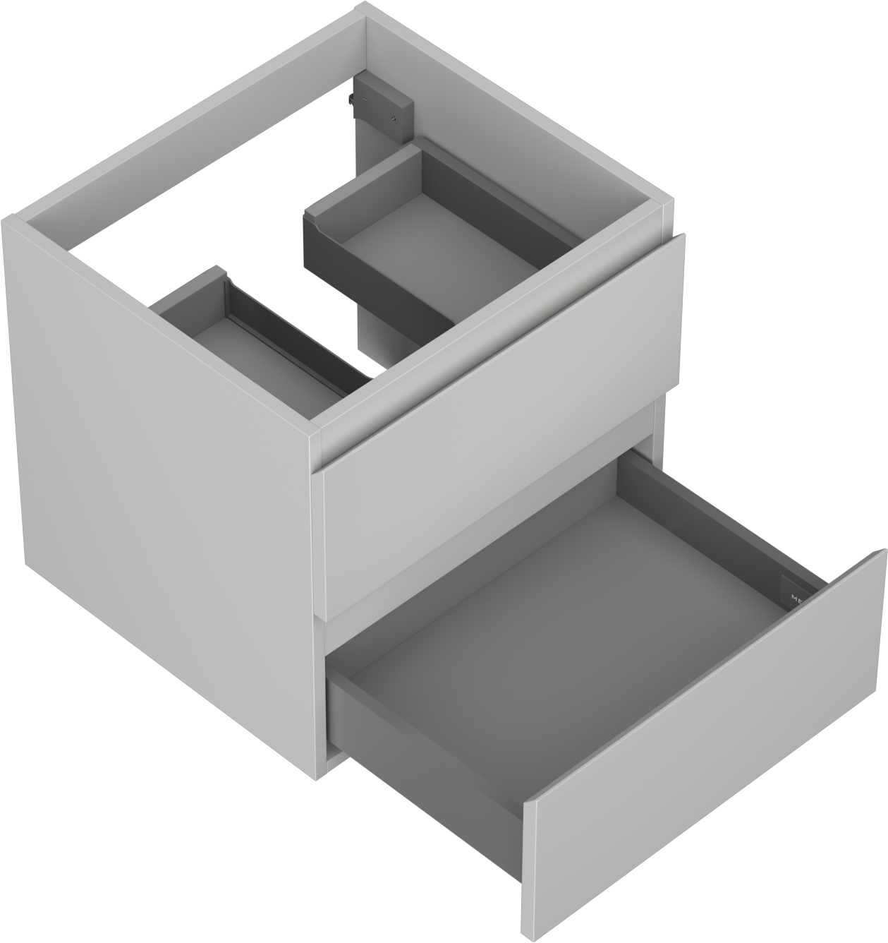 De uitsparing in de lade is ontworpen voor de sifon, die essentieel is bij het installeren van wastafels. Hierdoor kan de unit volledig functioneel worden geïnstalleerd zonder dat er laderuimte hoeft te worden opgeofferd.