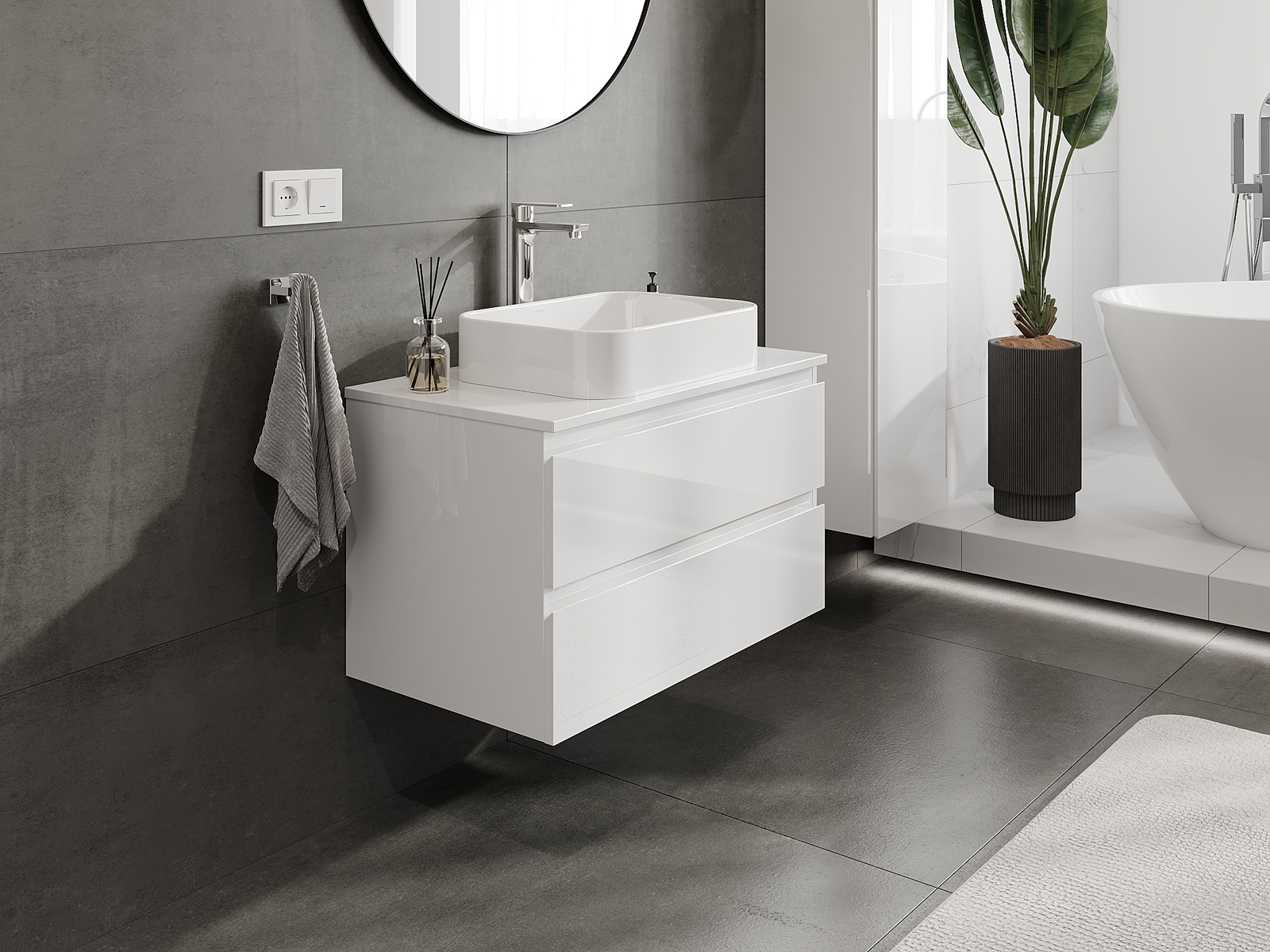 Onze modulaire badkamermeubels kunnen in verschillende kleurconfiguraties met elkaar worden gecombineerd, wat volledige personalisatie mogelijk maakt. Zowel het uiterlijk als de functies van de afzonderlijke elementen kunnen worden gekozen, waardoor de meubels kunnen worden aangepast aan persoonlijke stijlvoorkeuren en gebruikswensen.