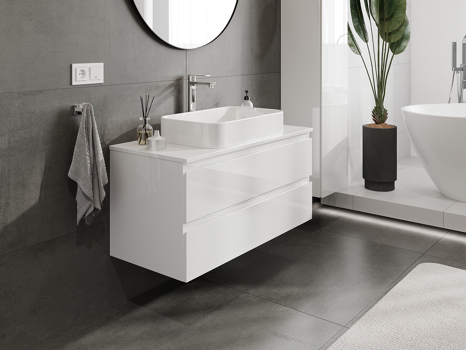 Onze modulaire badkamermeubels kunnen in verschillende kleurconfiguraties met elkaar worden gecombineerd, wat volledige personalisatie mogelijk maakt. Zowel het uiterlijk als de functies van de afzonderlijke elementen kunnen worden gekozen, waardoor de meubels kunnen worden aangepast aan persoonlijke stijlvoorkeuren en gebruikswensen.
