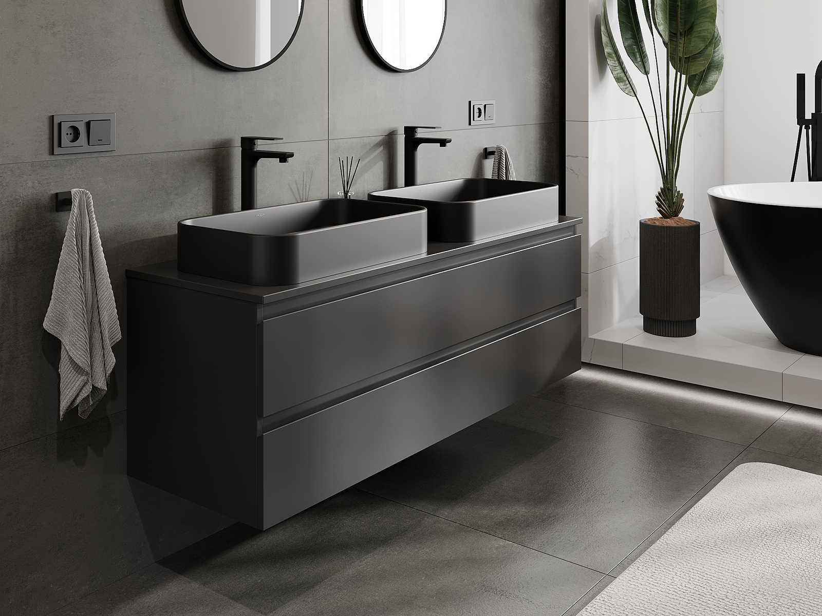 Mexen Orio badkamerkast onder de wastafel 140 cm, 2 laden, zwart mat - 91A10-14047-2-BFF71