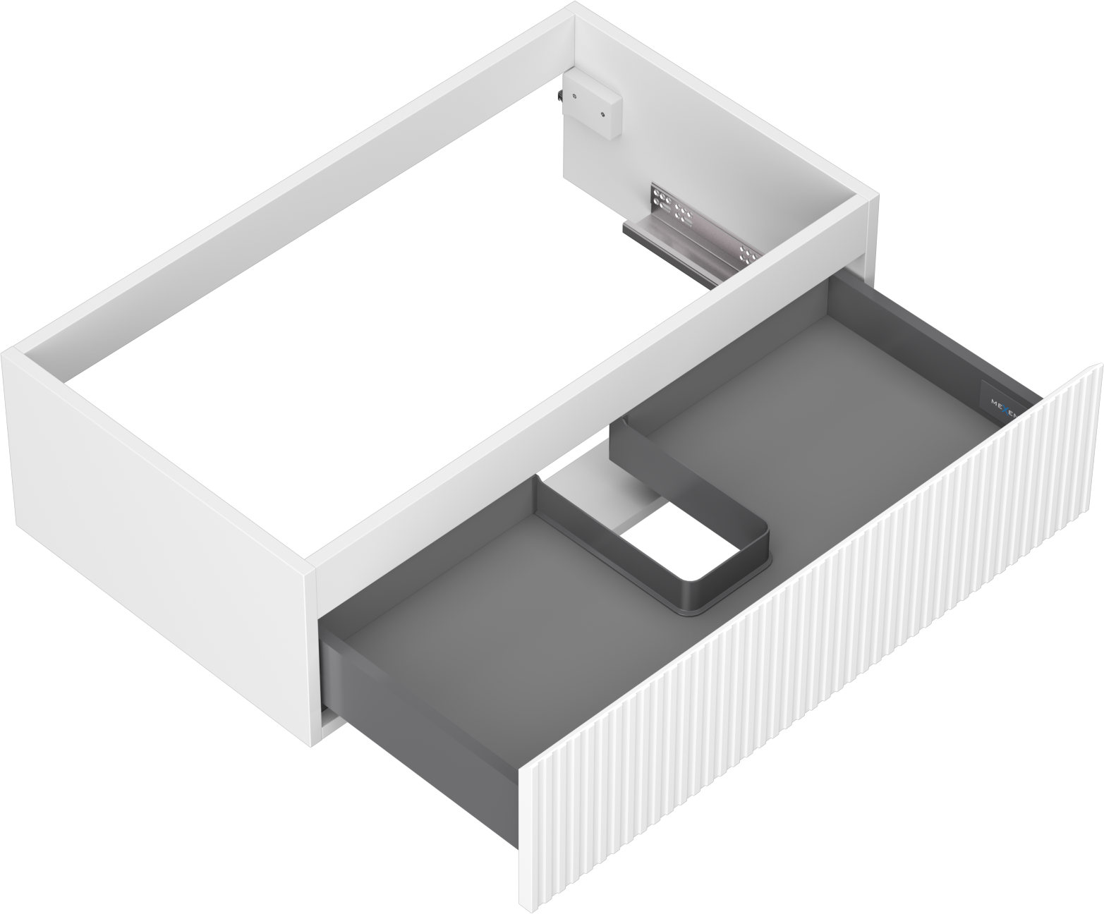 De uitsparing in de lade is ontworpen voor de sifon, die essentieel is bij het installeren van wastafels. Hierdoor kan de unit volledig functioneel worden geïnstalleerd zonder dat er laderuimte hoeft te worden opgeofferd.