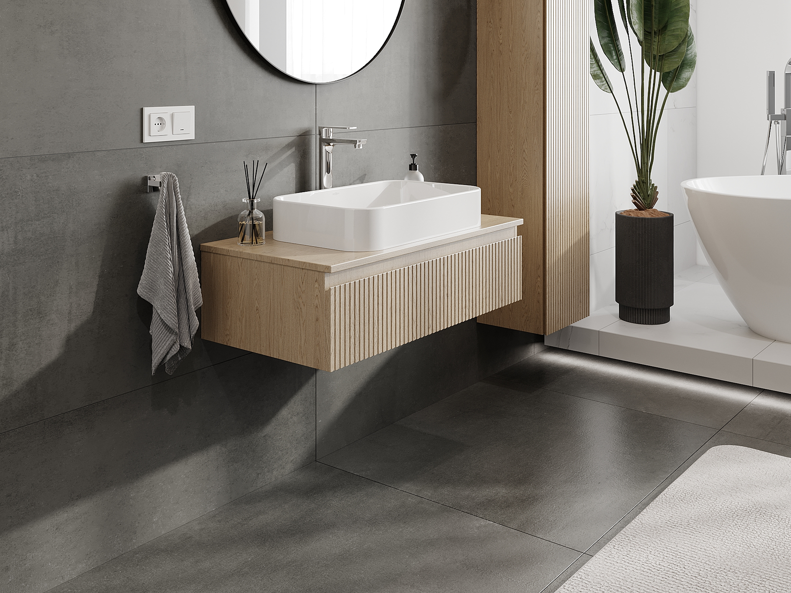 Onze modulaire badkamermeubels kunnen in verschillende kleurconfiguraties met elkaar worden gecombineerd, wat volledige personalisatie mogelijk maakt. Zowel het uiterlijk als de functies van de afzonderlijke elementen kunnen worden gekozen, waardoor de meubels kunnen worden aangepast aan persoonlijke stijlvoorkeuren en gebruikswensen.