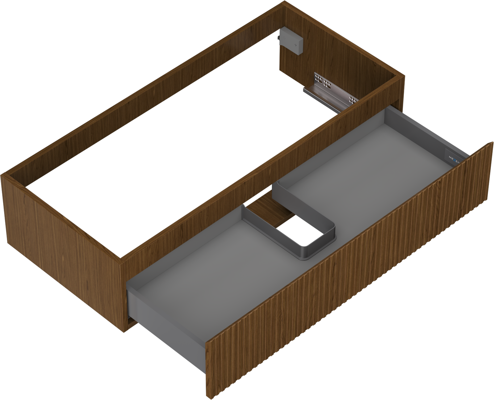 De uitsparing in de lade is ontworpen voor de sifon, die essentieel is bij het installeren van wastafels. Hierdoor kan de unit volledig functioneel worden geïnstalleerd zonder dat er laderuimte hoeft te worden opgeofferd.