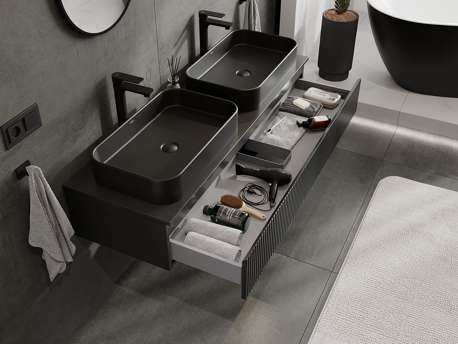 Mexen Rivel badkamerkast 140 cm, 1 lade, gegroefd, zwart mat - 91A20-14023-1-BF71