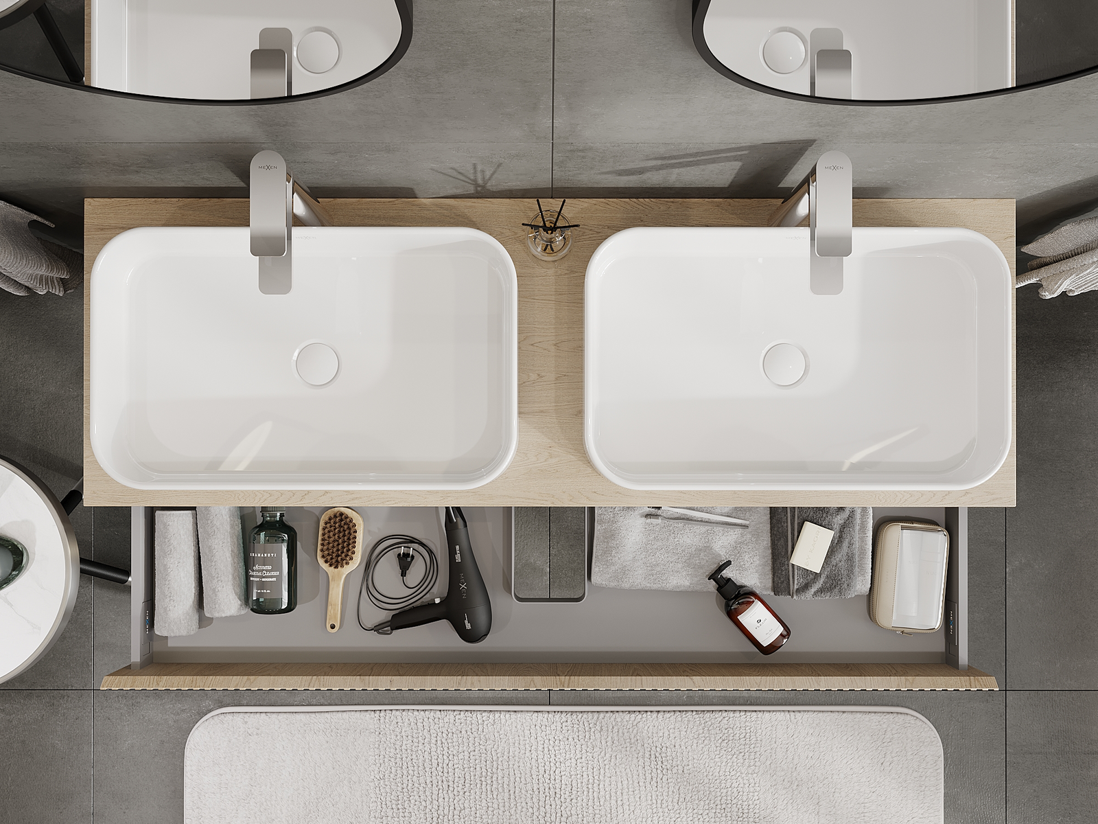 Onze modulaire badkamermeubels kunnen in verschillende kleurconfiguraties met elkaar worden gecombineerd, wat volledige personalisatie mogelijk maakt. Zowel het uiterlijk als de functies van de afzonderlijke elementen kunnen worden gekozen, waardoor de meubels kunnen worden aangepast aan persoonlijke stijlvoorkeuren en gebruikswensen.