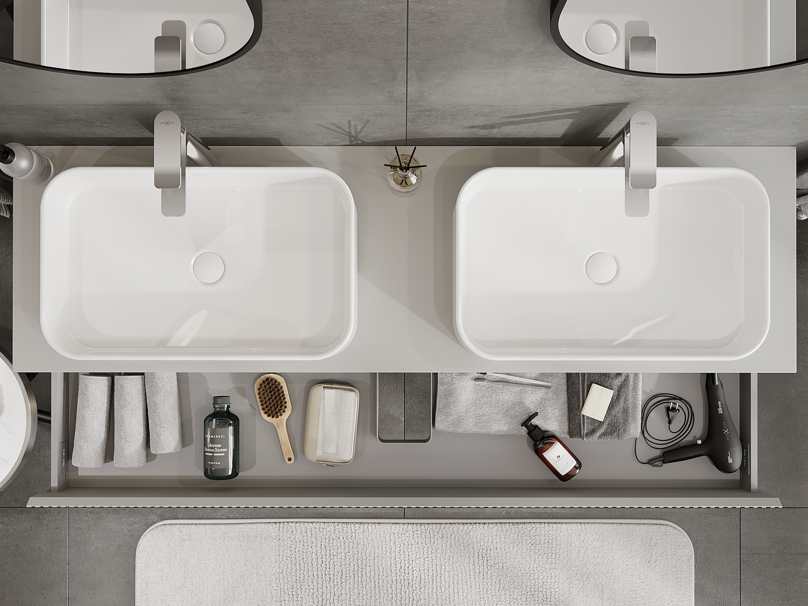 Onze modulaire badkamermeubels kunnen in verschillende kleurconfiguraties met elkaar worden gecombineerd, wat volledige personalisatie mogelijk maakt. Zowel het uiterlijk als de functies van de afzonderlijke elementen kunnen worden gekozen, waardoor de meubels kunnen worden aangepast aan persoonlijke stijlvoorkeuren en gebruikswensen.