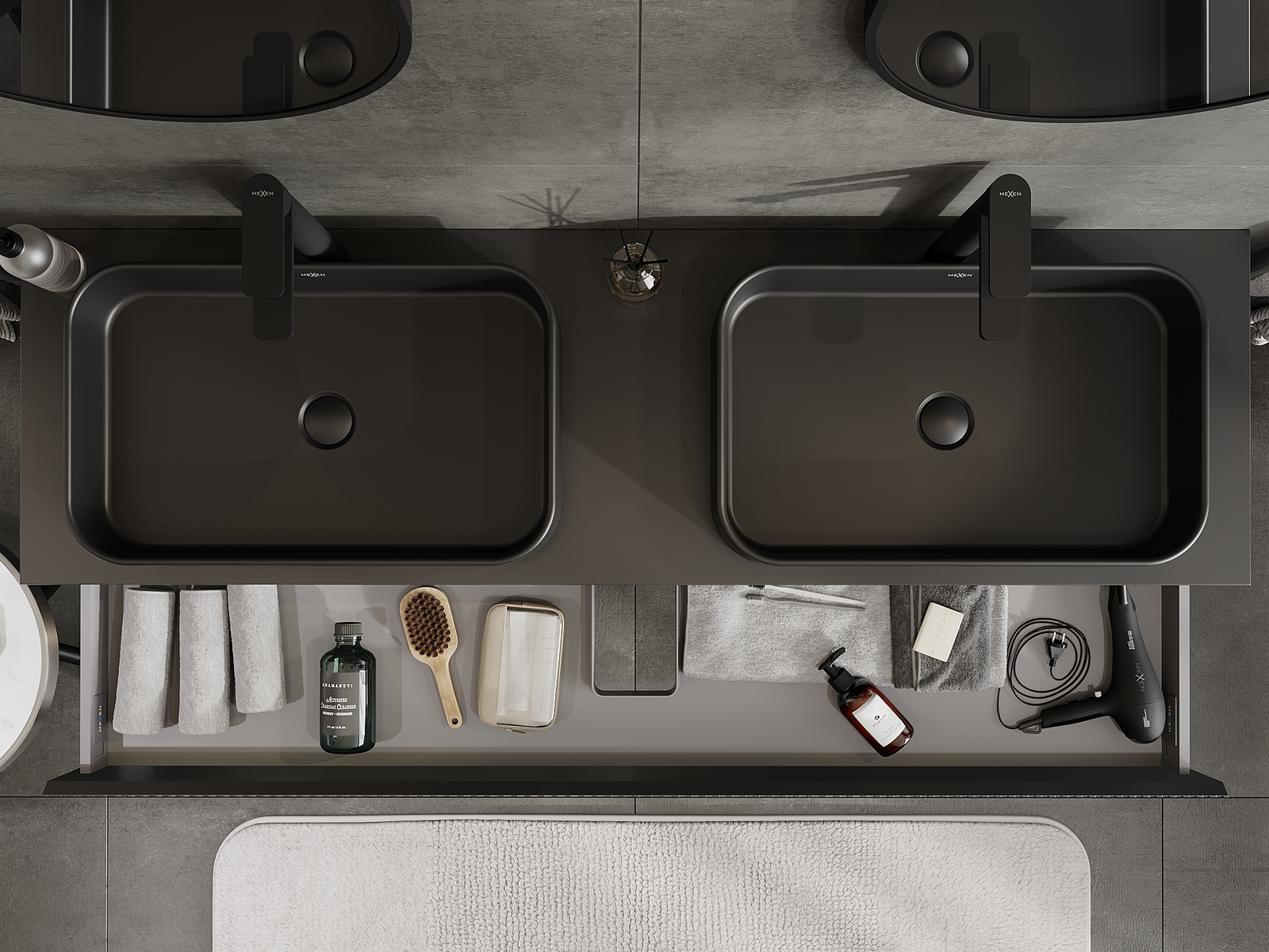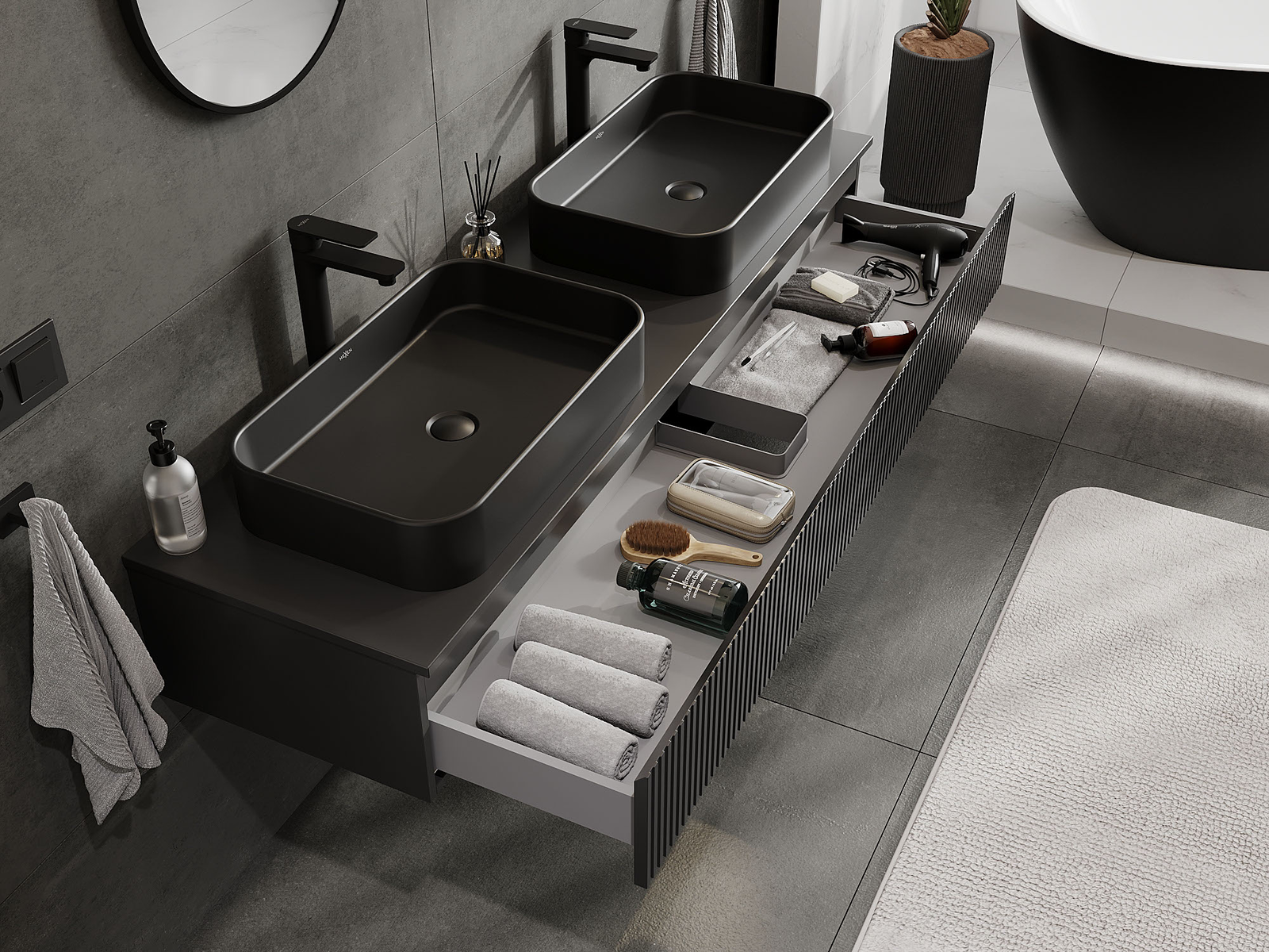 Mexen Rivel badkamerkast 160 cm, 1 lade, geribbeld, zwart mat - 91A20-16023-1-BF71