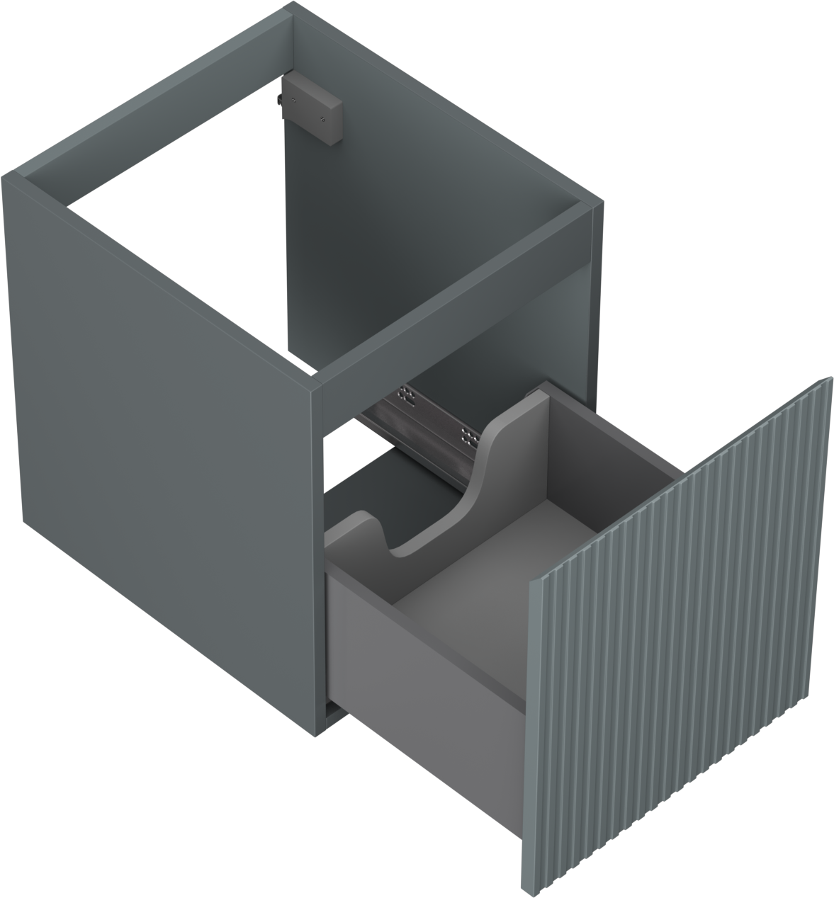 De uitsparing in de lade is ontworpen voor de sifon, die essentieel is bij het installeren van wastafels. Hierdoor kan de unit volledig functioneel worden geïnstalleerd zonder dat er laderuimte hoeft te worden opgeofferd.