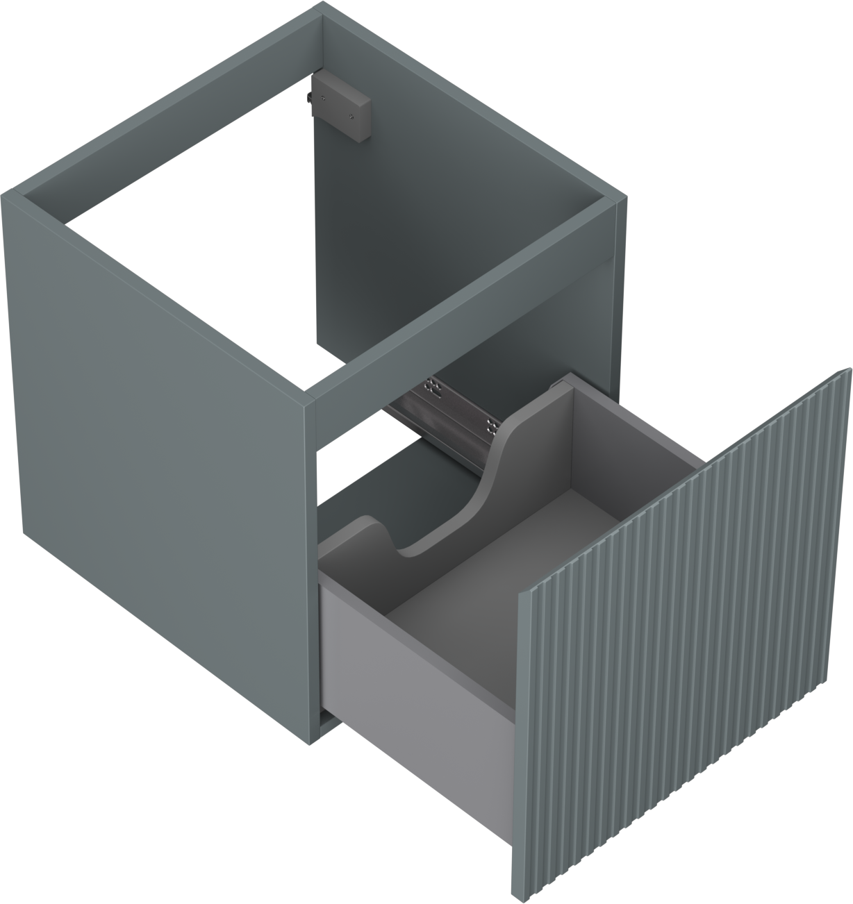 De uitsparing in de lade is zo ontworpen dat het de sifon kan bevatten, die noodzakelijk is in wastafelinstallaties. Hierdoor kan het meubel volledig functioneel worden gemonteerd, zonder dat er ruimte in de lade opgeofferd hoeft te worden voor installatiedoeleinden.