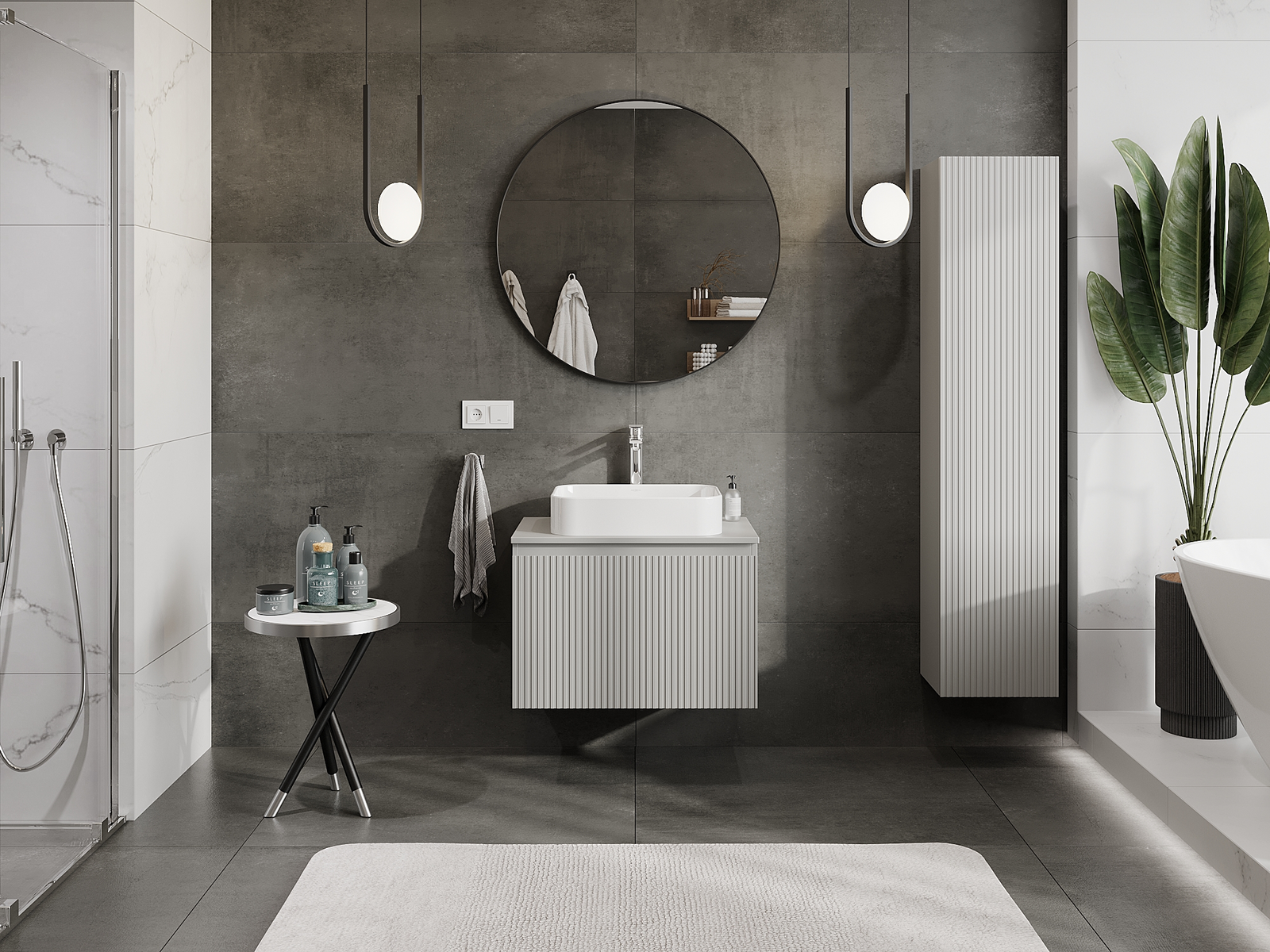 Mexen Rivel badkamerkastje onder wastafel 70 cm, 1 lade, geribbeld, grijs mat - 91A20-07047-1-BF62