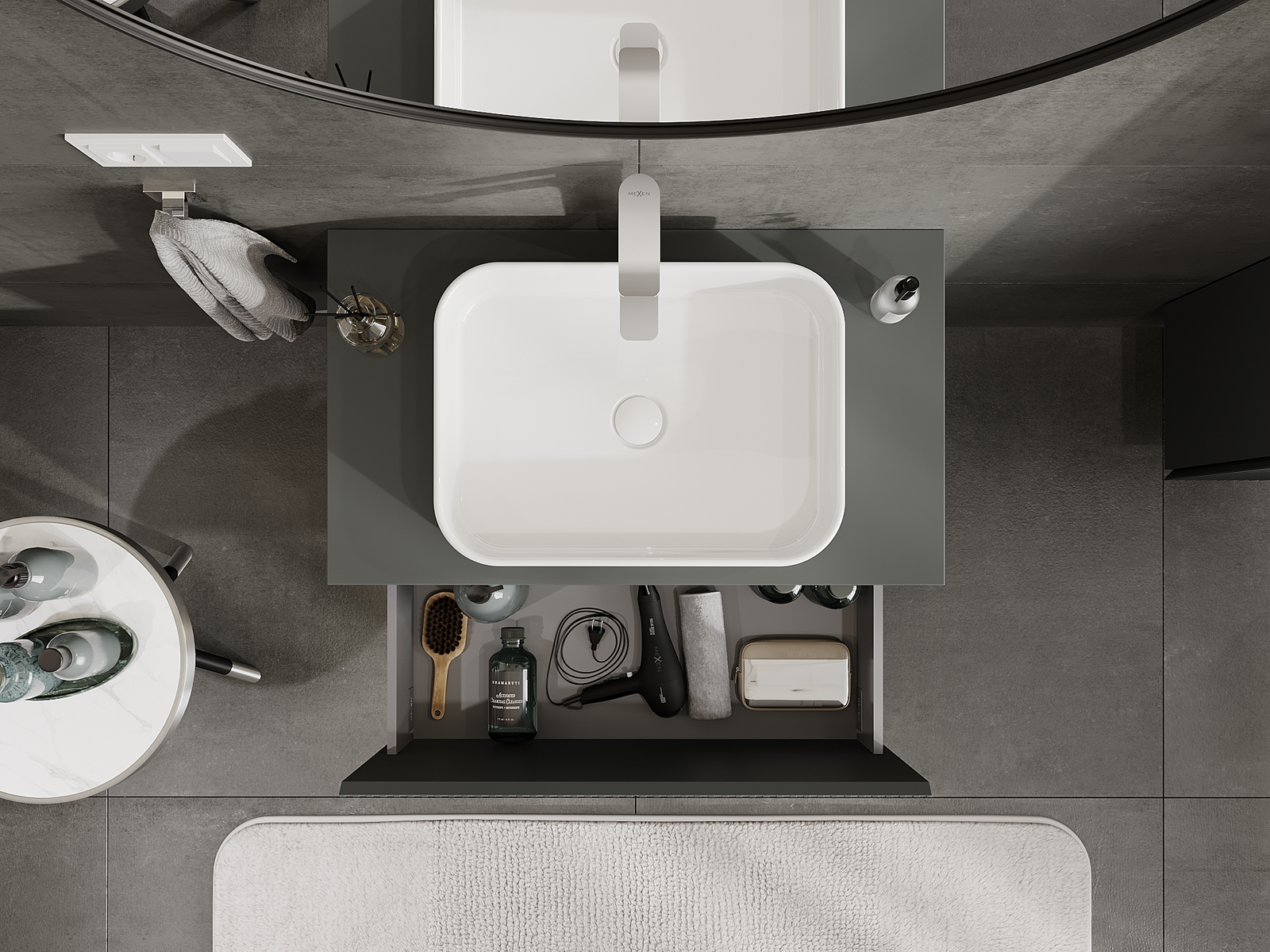 Onze modulaire badkamermeubels kunnen in verschillende kleurconfiguraties met elkaar worden gecombineerd, wat volledige personalisatie mogelijk maakt. Zowel het uiterlijk als de functies van de afzonderlijke elementen kunnen worden gekozen, waardoor de meubels kunnen worden aangepast aan persoonlijke stijlvoorkeuren en gebruikswensen.