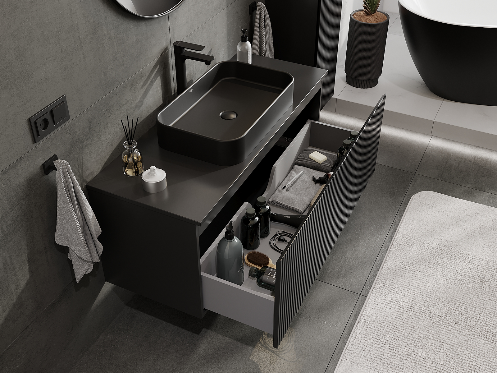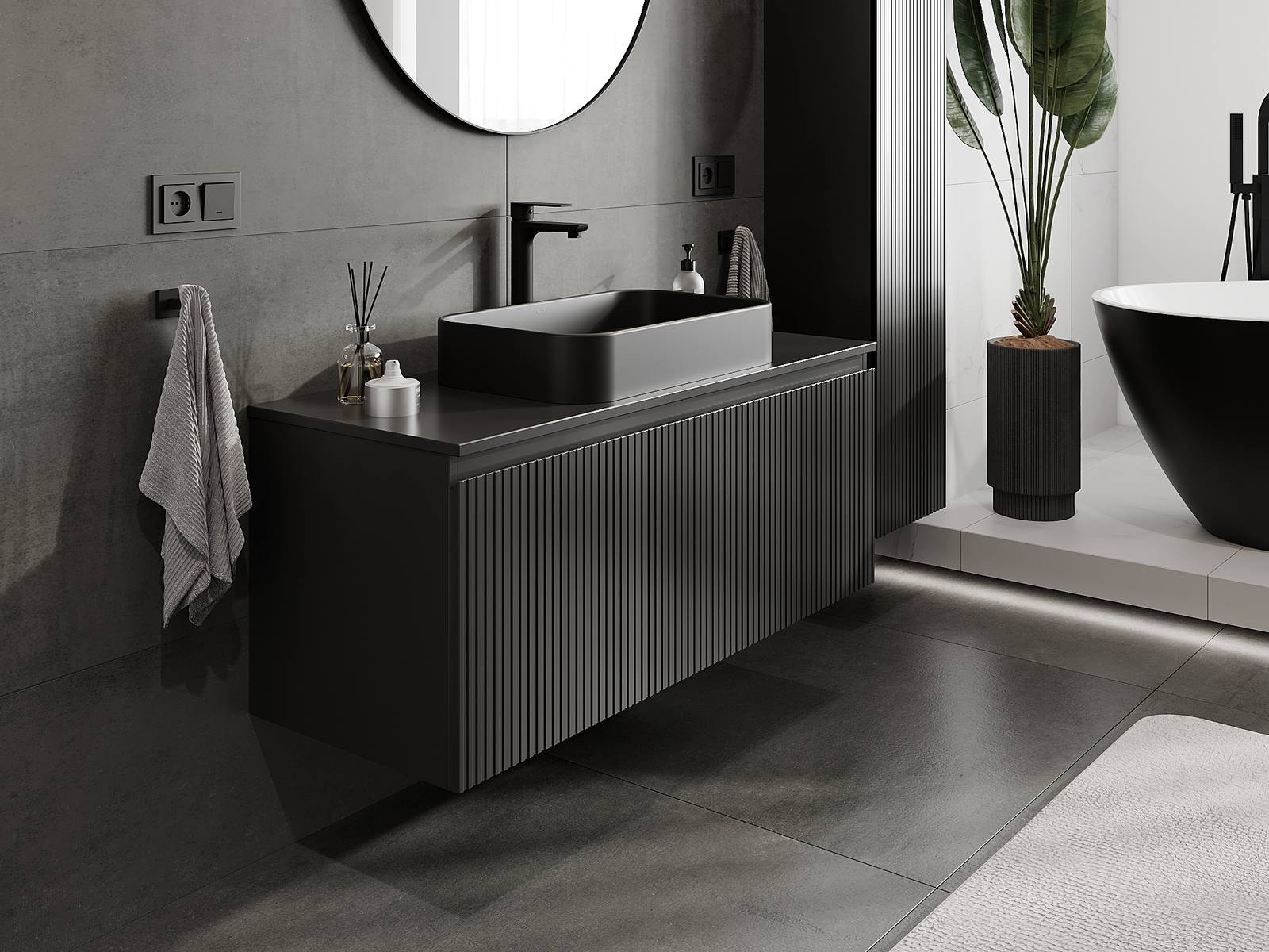 Onze modulaire badkamermeubels kunnen in verschillende kleurconfiguraties met elkaar worden gecombineerd, wat volledige personalisatie mogelijk maakt. Zowel het uiterlijk als de functies van de afzonderlijke elementen kunnen worden gekozen, waardoor de meubels kunnen worden aangepast aan persoonlijke stijlvoorkeuren en gebruikswensen.