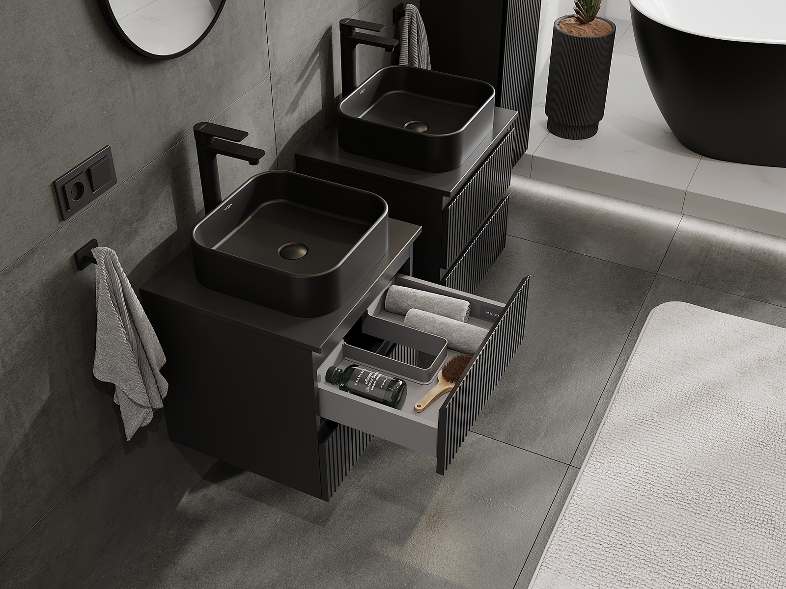 Mexen Rivel badkamerkastje onder de wastafel 50 cm, 2 lades, gegroefd, zwart mat - 91A20-05047-2-BFF71