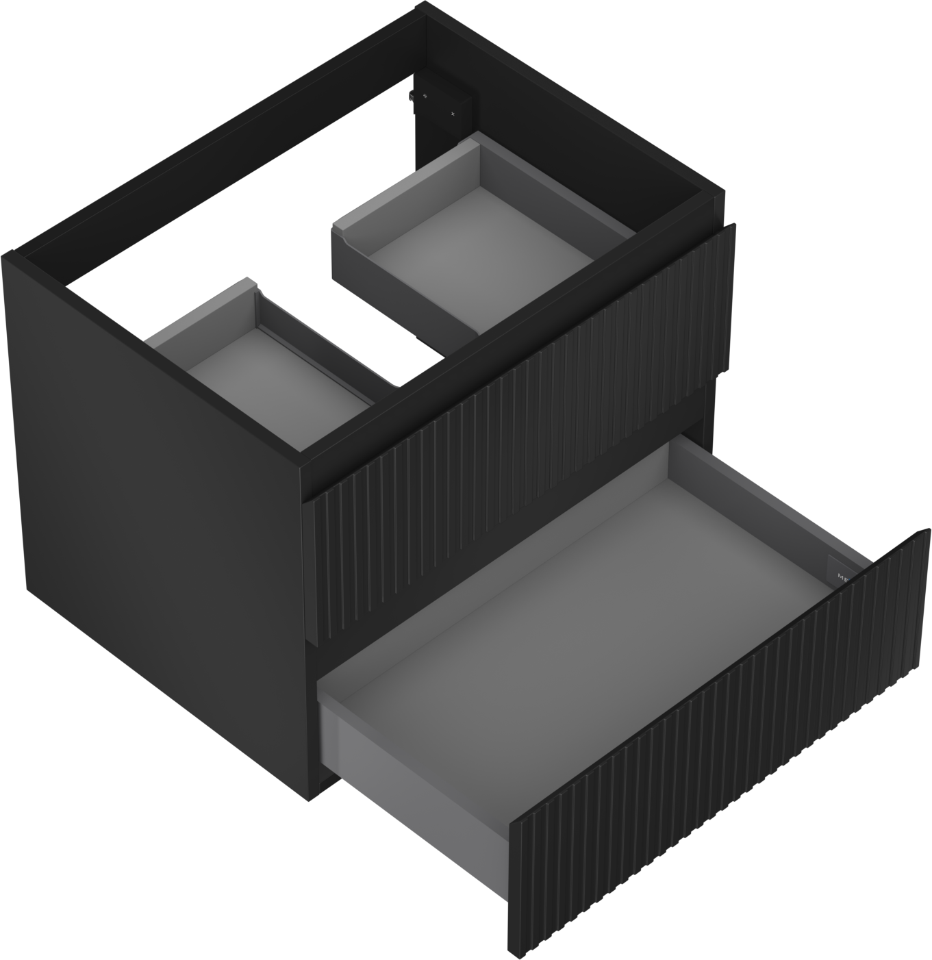 Mexen Rivel badkamerkast onder de wastafel 60 cm, 2 laden, geribbeld, zwart mat - 91A20-06047-2-BFF71