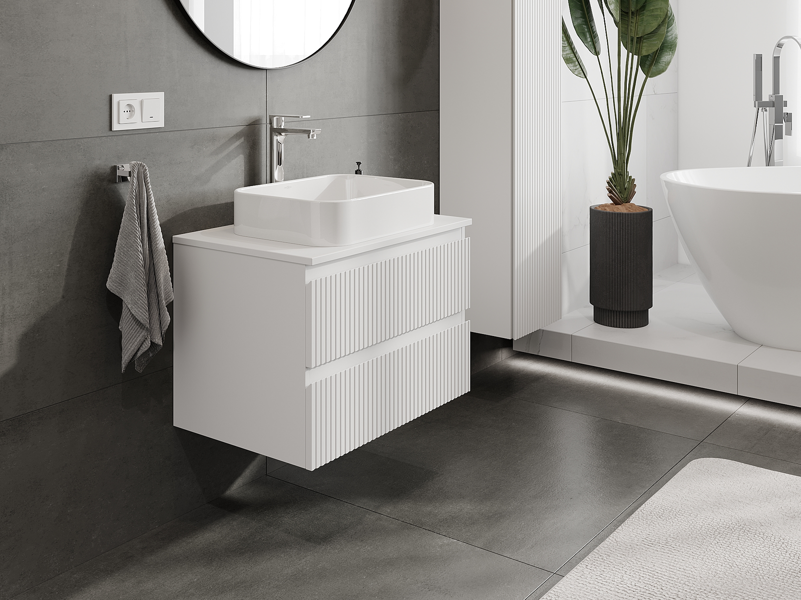 Onze modulaire badkamermeubels kunnen in verschillende kleurconfiguraties met elkaar worden gecombineerd, wat volledige personalisatie mogelijk maakt. Zowel het uiterlijk als de functies van de afzonderlijke elementen kunnen worden gekozen, waardoor de meubels kunnen worden aangepast aan persoonlijke stijlvoorkeuren en gebruikswensen.