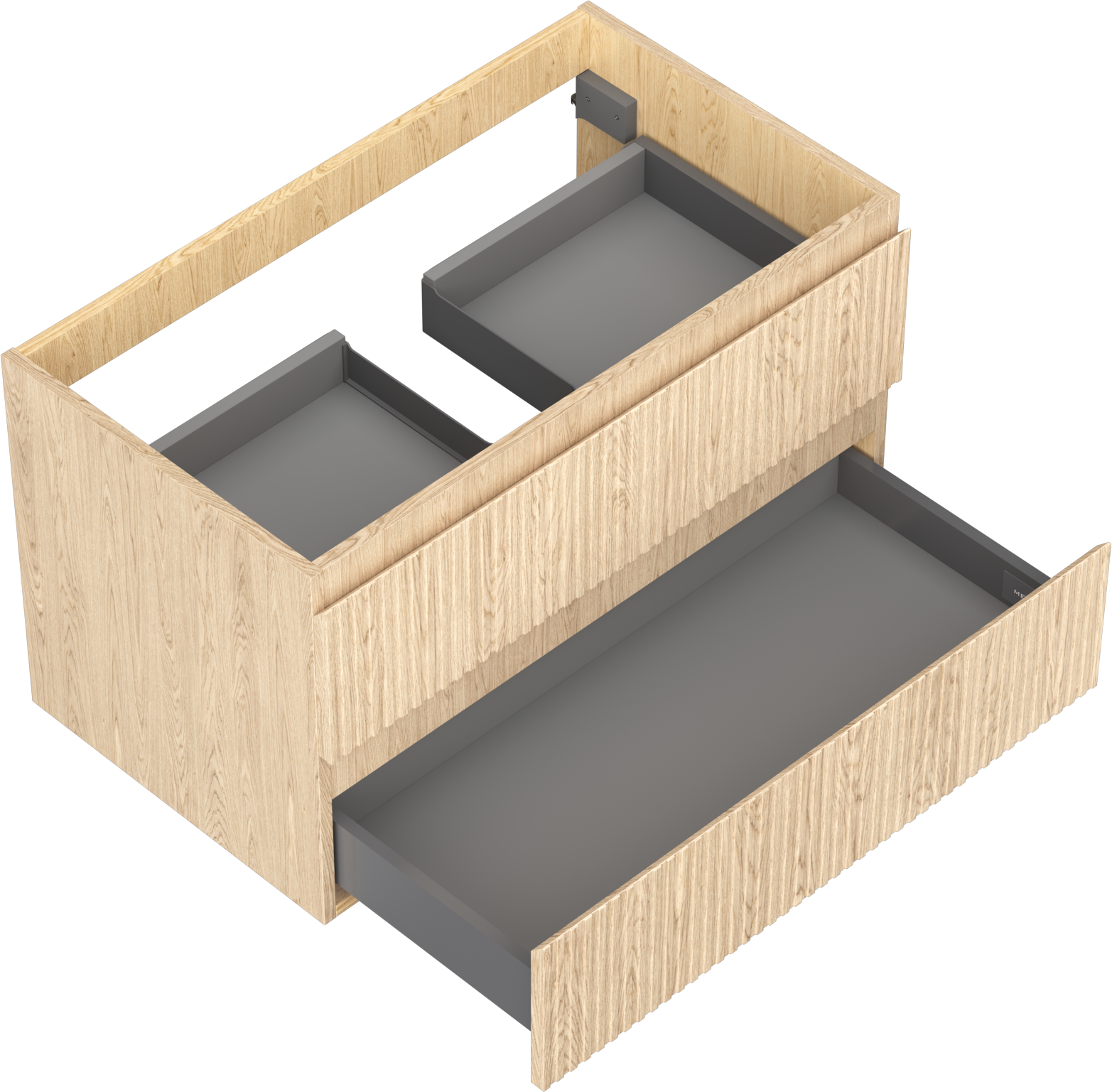 Mexen Rivel badkamerkastje onder wastafel 80 cm, 2 laden, geribbeld, eik - 91A20-08047-2-BFF81