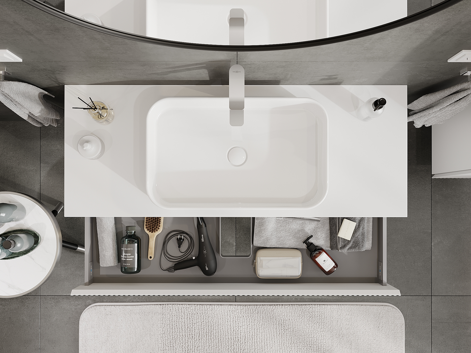 Onze modulaire badkamermeubels kunnen in verschillende kleurconfiguraties met elkaar worden gecombineerd, wat volledige personalisatie mogelijk maakt. Zowel het uiterlijk als de functies van de afzonderlijke elementen kunnen worden gekozen, waardoor de meubels kunnen worden aangepast aan persoonlijke stijlvoorkeuren en gebruikswensen.
