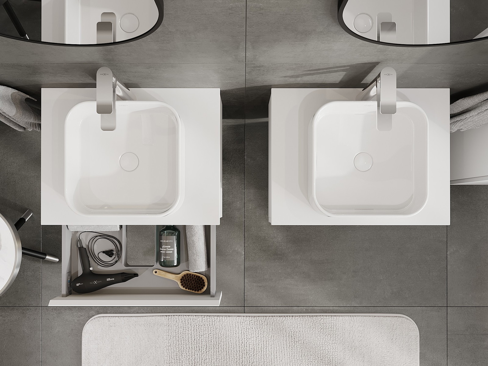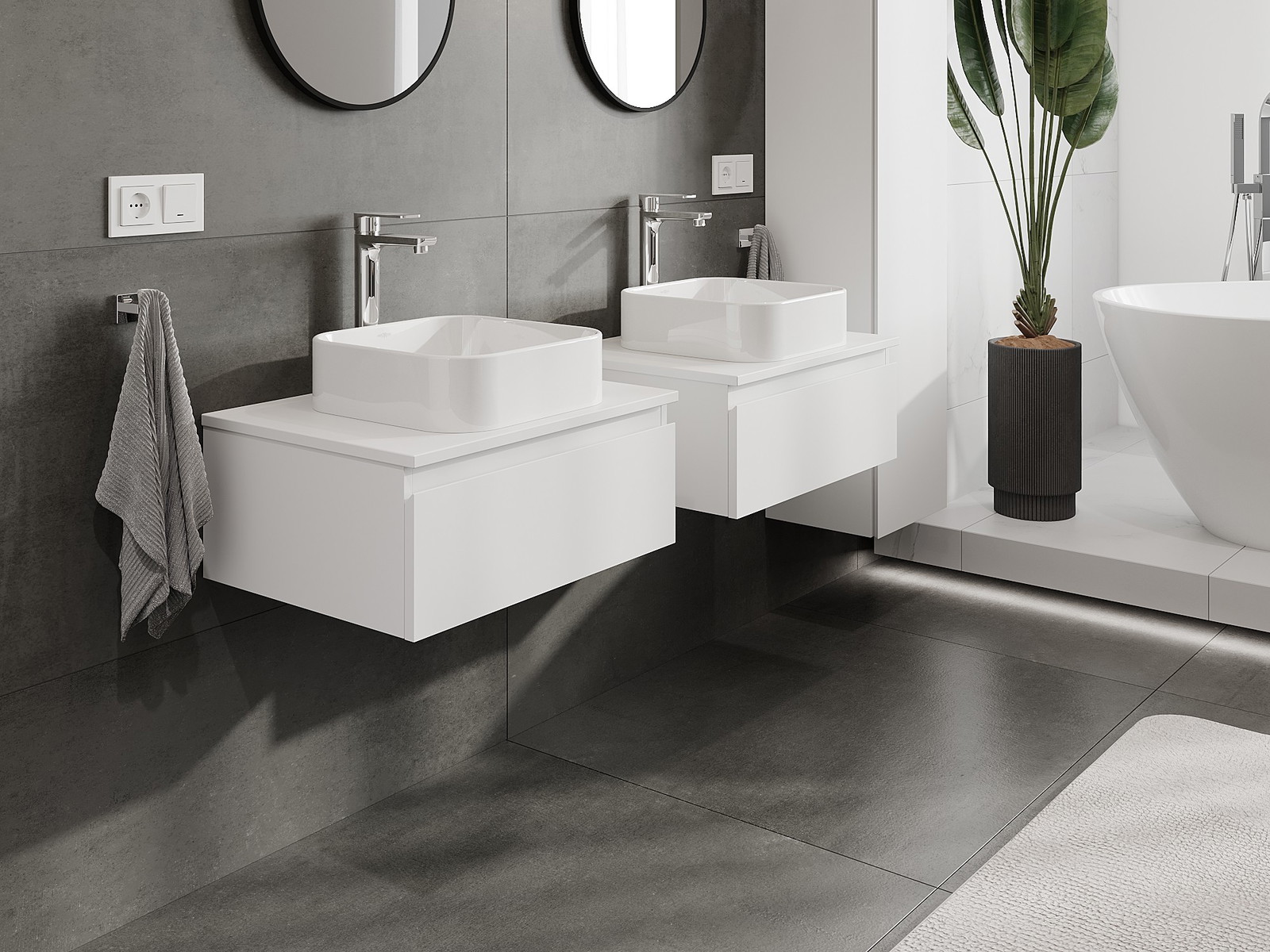 Onze modulaire badkamermeubels kunnen in verschillende kleurconfiguraties met elkaar worden gecombineerd, wat volledige personalisatie mogelijk maakt. Zowel het uiterlijk als de functies van de afzonderlijke elementen kunnen worden gekozen, waardoor de meubels kunnen worden aangepast aan persoonlijke stijlvoorkeuren en gebruikswensen.