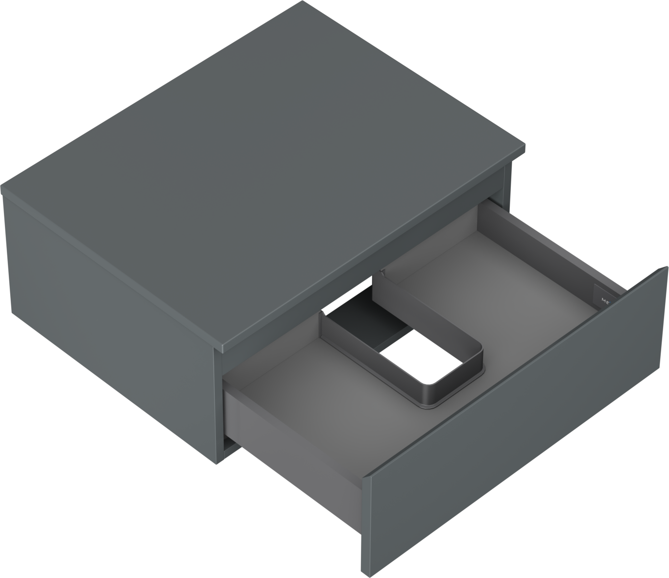 De uitsparing in de lade is zo ontworpen dat het de sifon kan bevatten, die noodzakelijk is in wastafelinstallaties. Hierdoor kan het meubel volledig functioneel worden gemonteerd, zonder dat er ruimte in de lade opgeofferd hoeft te worden voor installatiedoeleinden.