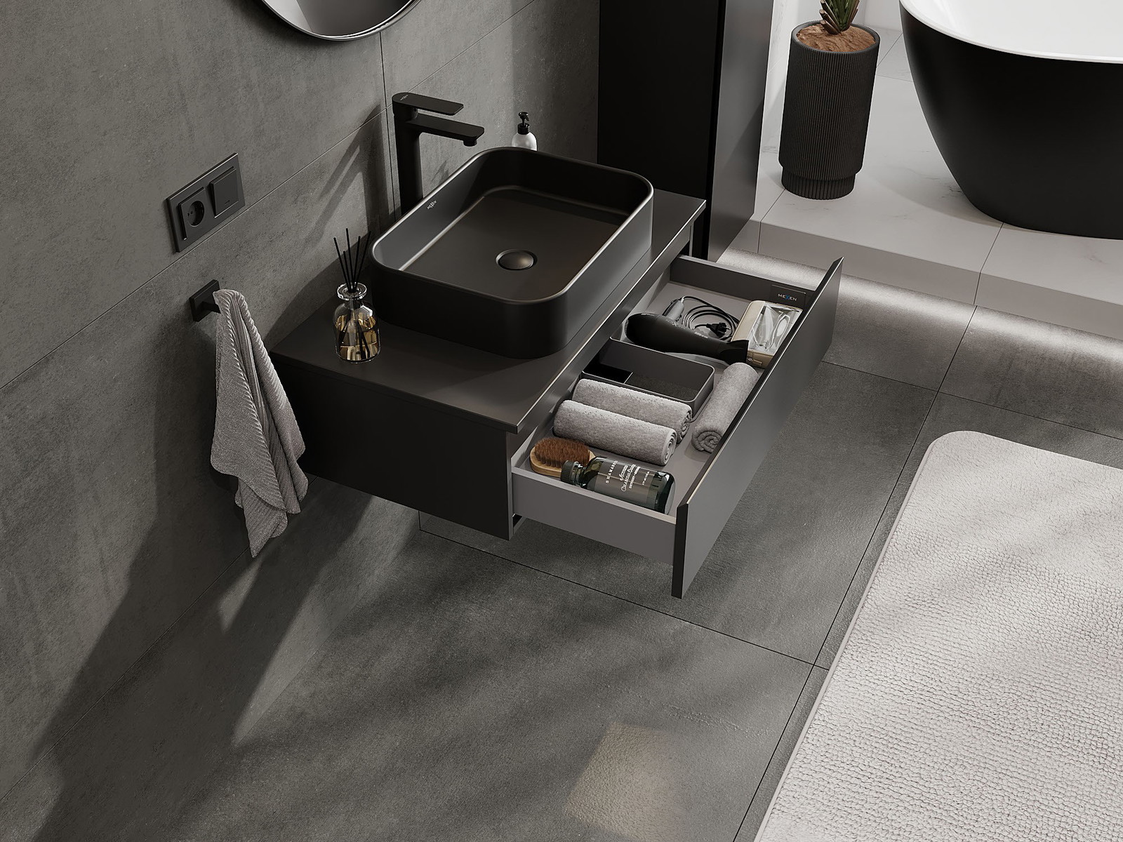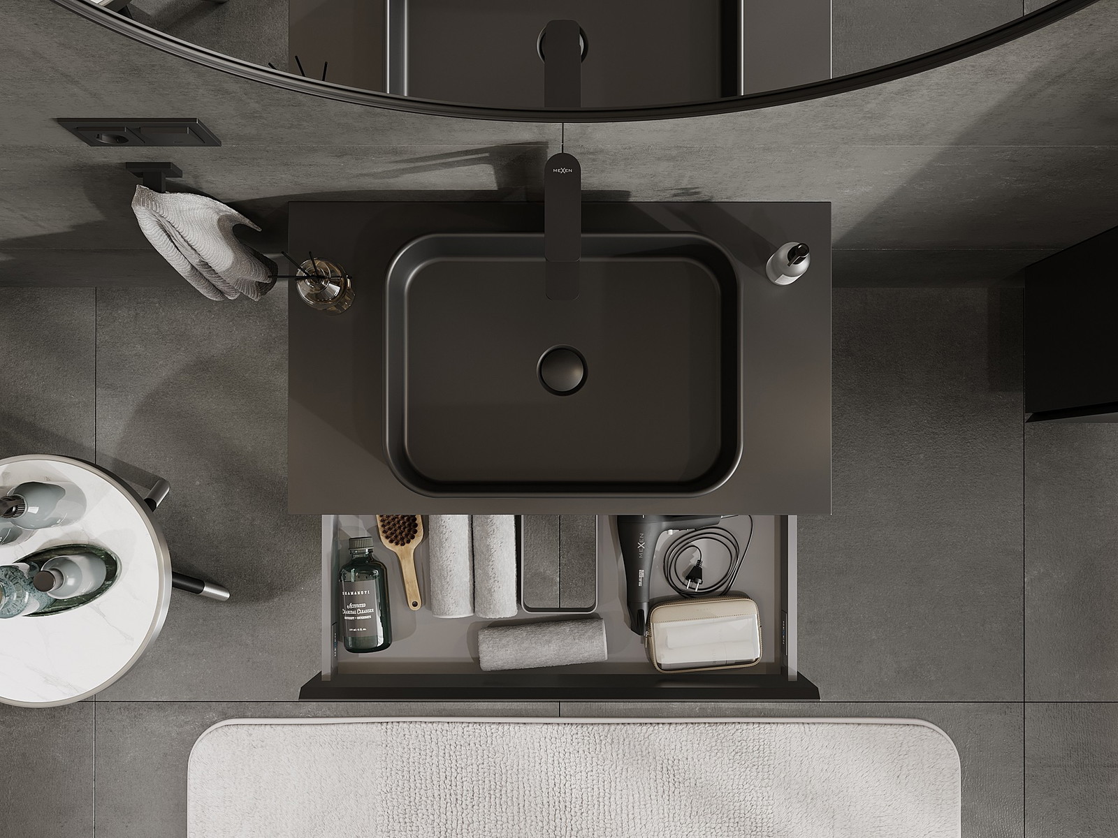Mexen Orio badkamerkastje voor onder de wastafel 80 cm met blad, 1 lade, zwart mat - 91A10-08023-1-BFC71