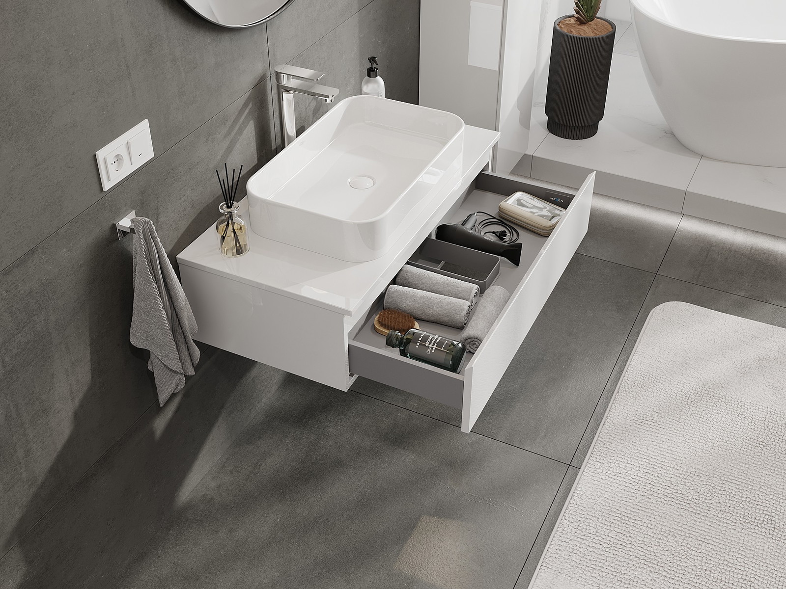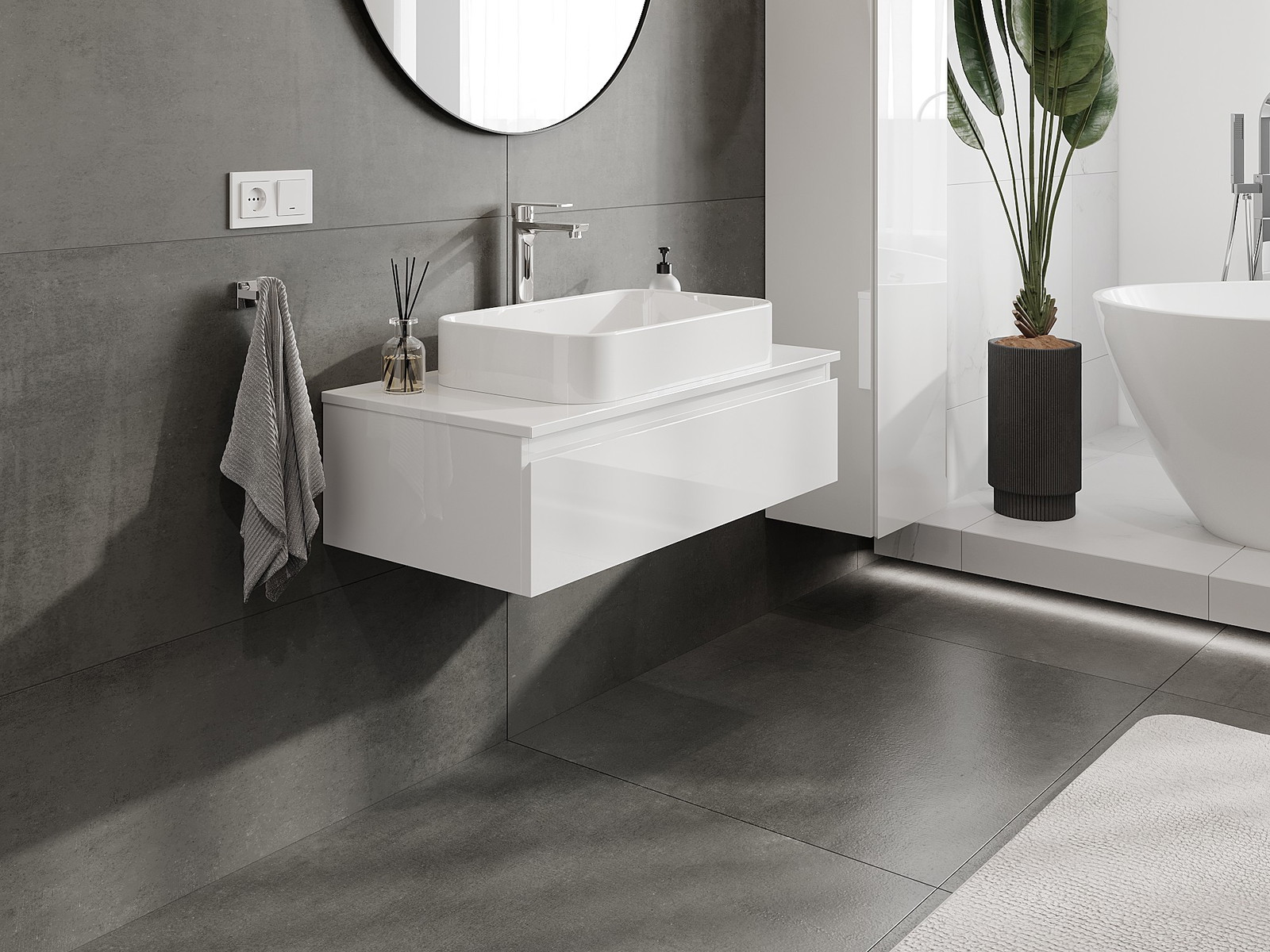 Onze modulaire badkamermeubels kunnen in verschillende kleurconfiguraties met elkaar worden gecombineerd, wat volledige personalisatie mogelijk maakt. Zowel het uiterlijk als de functies van de afzonderlijke elementen kunnen worden gekozen, waardoor de meubels kunnen worden aangepast aan persoonlijke stijlvoorkeuren en gebruikswensen.