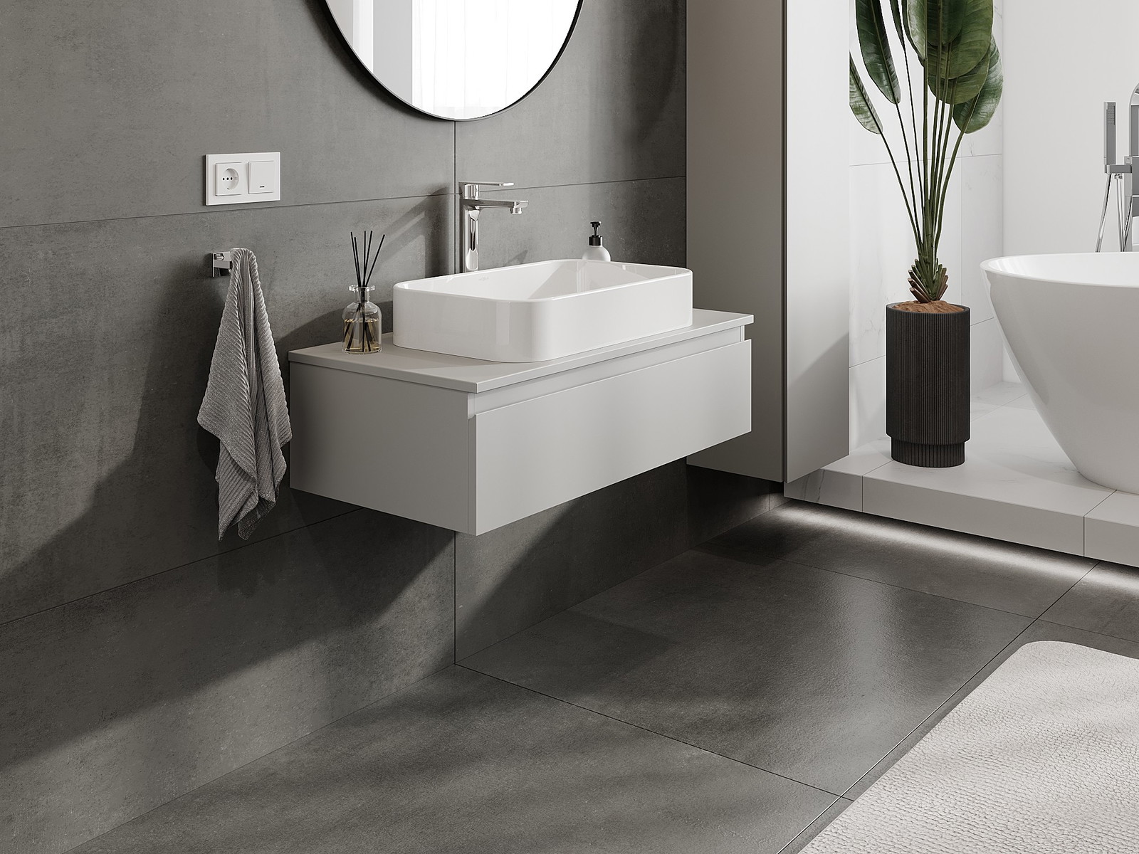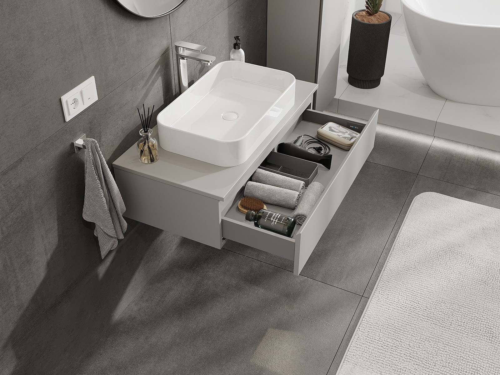 Onze modulaire badkamermeubels kunnen in verschillende kleurconfiguraties met elkaar worden gecombineerd, wat volledige personalisatie mogelijk maakt. Zowel het uiterlijk als de functies van de afzonderlijke elementen kunnen worden gekozen, waardoor de meubels kunnen worden aangepast aan persoonlijke stijlvoorkeuren en gebruikswensen.